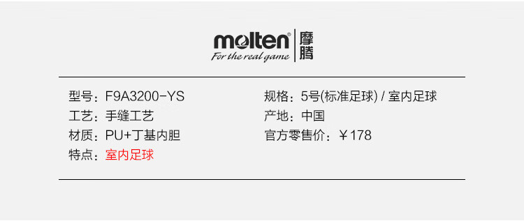 摩腾(molten)摩腾(molten) 室内低弹足球 5人制PU魔腾手缝 F9A3200-YS