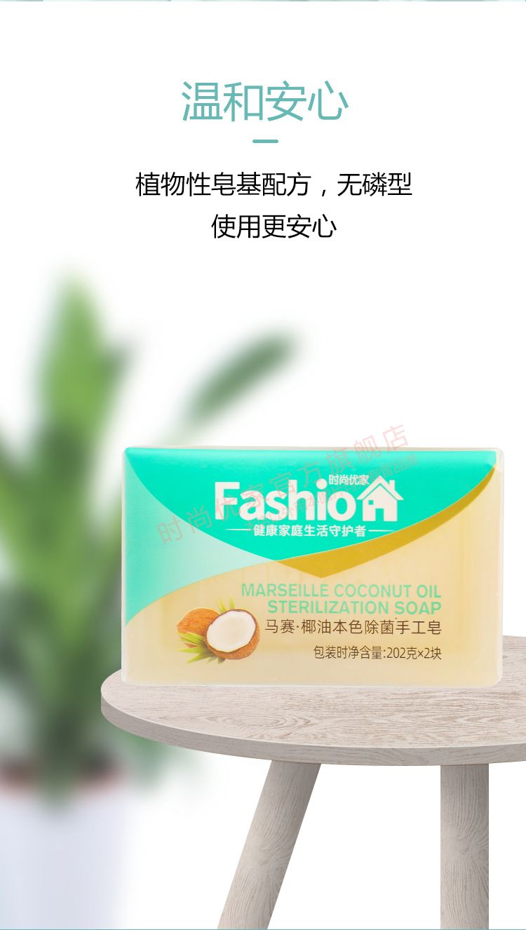 时尚优家马赛椰油本色除菌手工皂202g*2块(买一得三)共6块