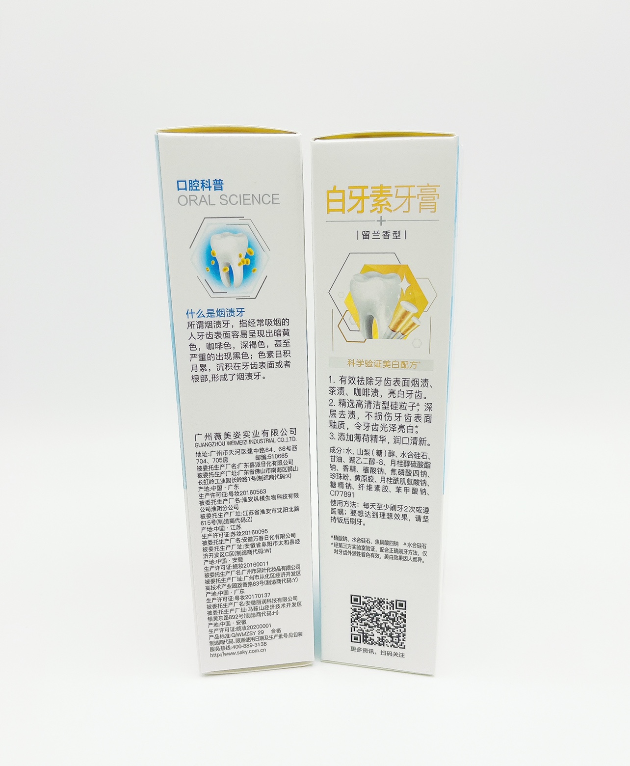 舒客极悦白牙素牙膏(去渍净白)120g*2支