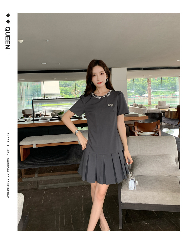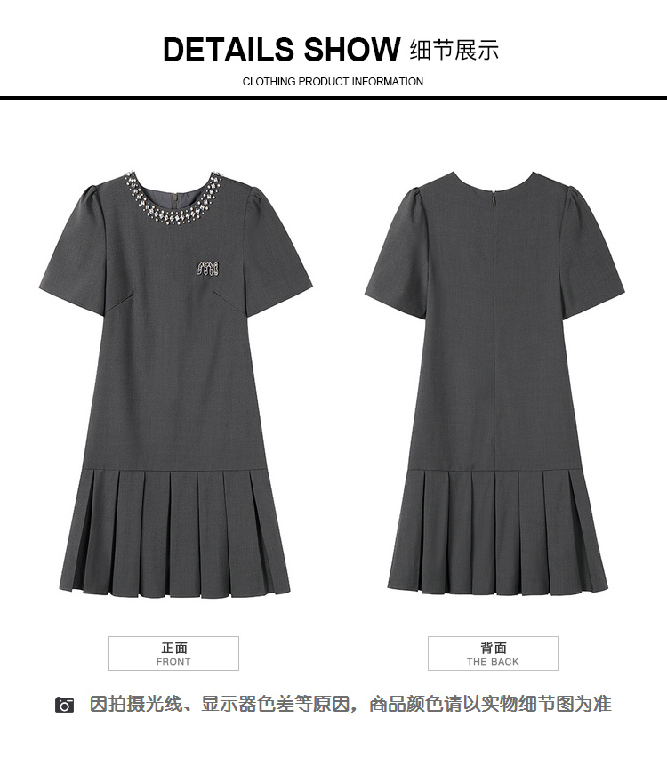 [奢姿轻奢系列]钉珠百褶连衣裙大码女装夏季新款胖妹妹圆领裙子8942826491