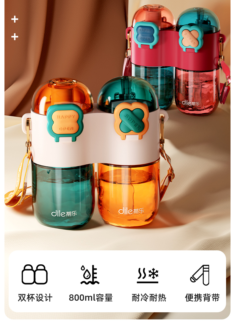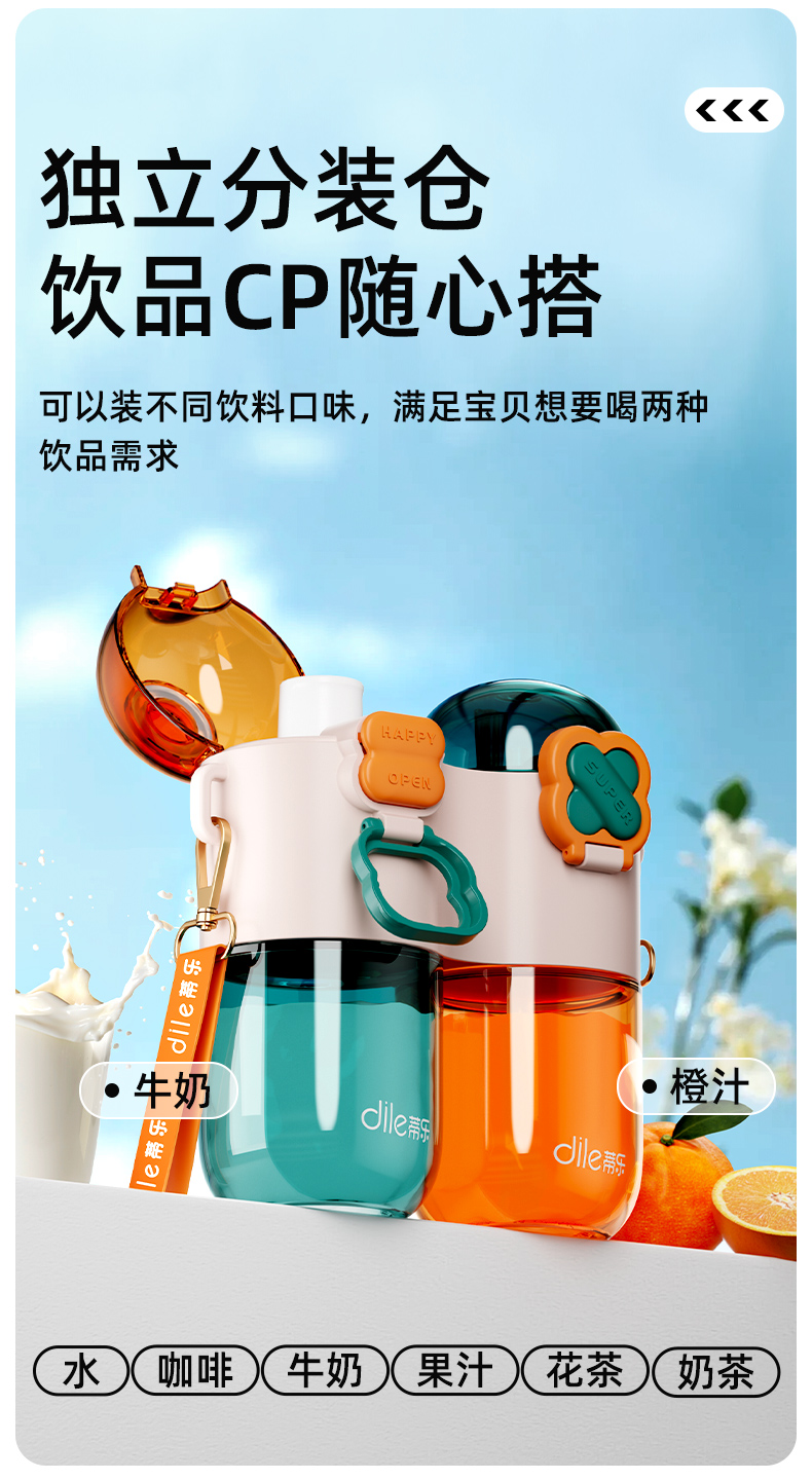 【超级福利仅需29.9元!】蒂乐儿童双仓双饮吸管水杯可爱大容量双拼水壶外出便携创意杯子