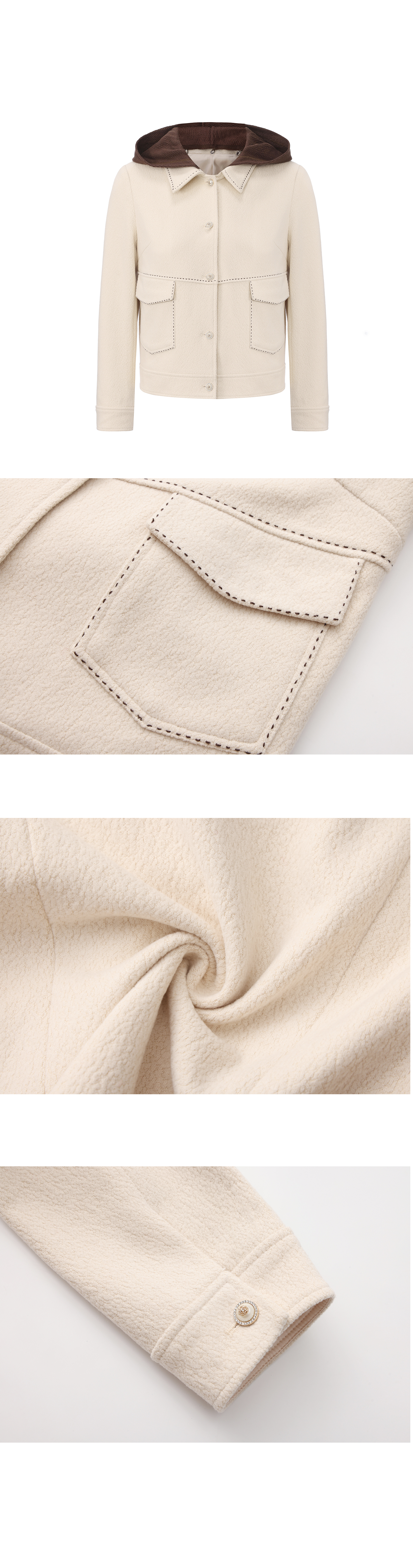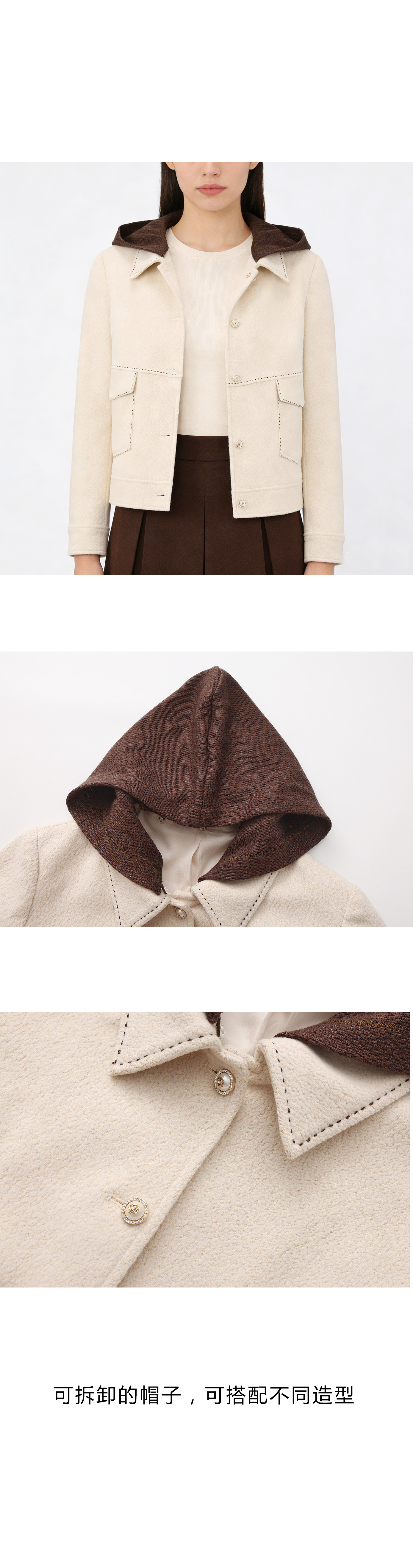 司歌弹力针织收腰外套女连帽可拆卸单排扣B921295X