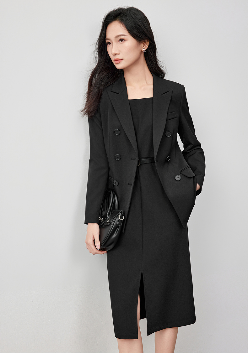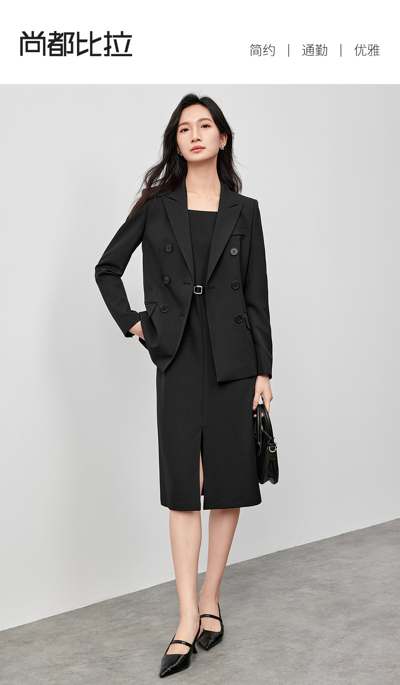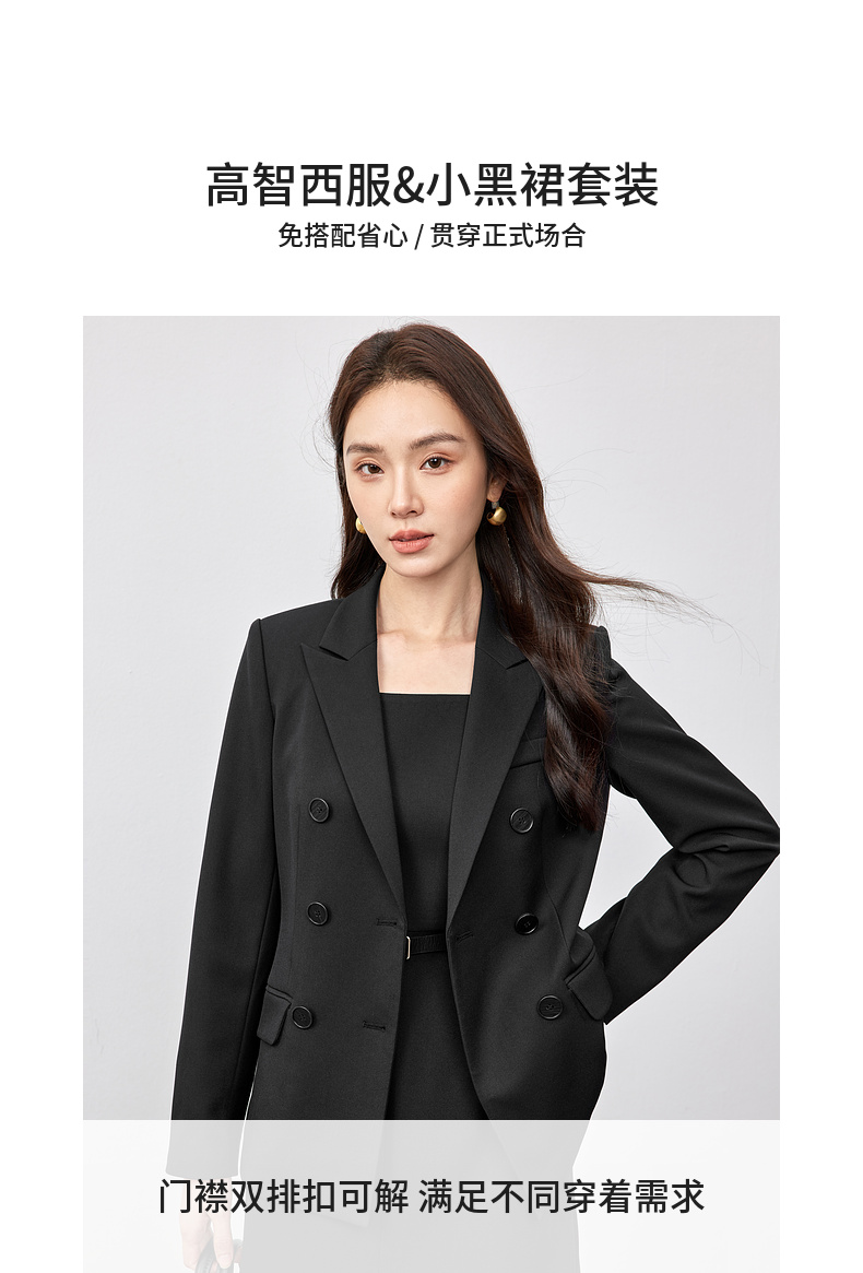 【内购】【高智通勤套装】经典戗驳领双排扣西服&可拆卸腰带背心连衣裙-151Z80054Z