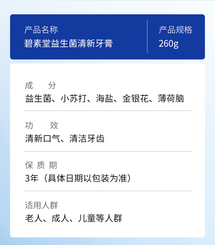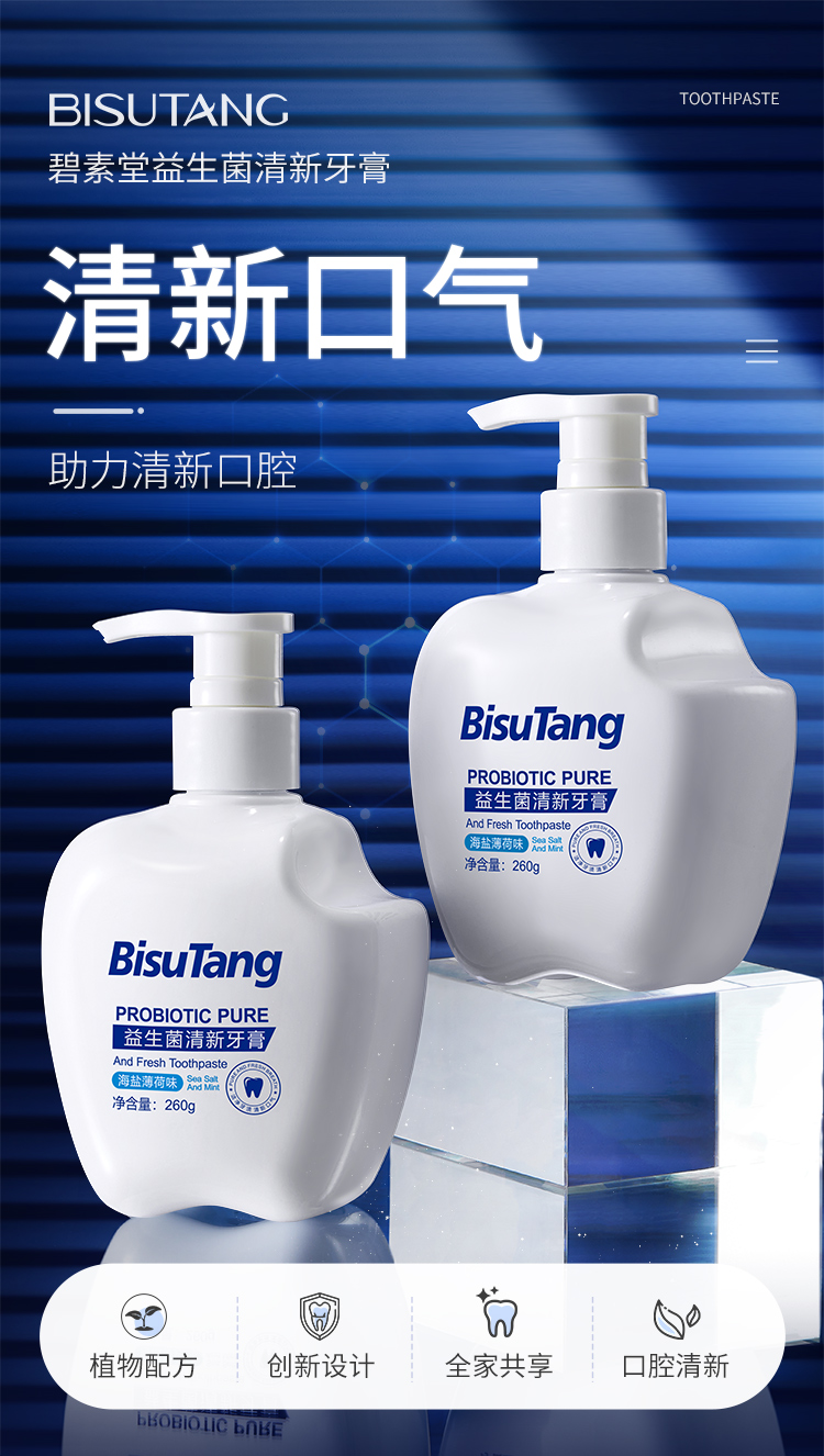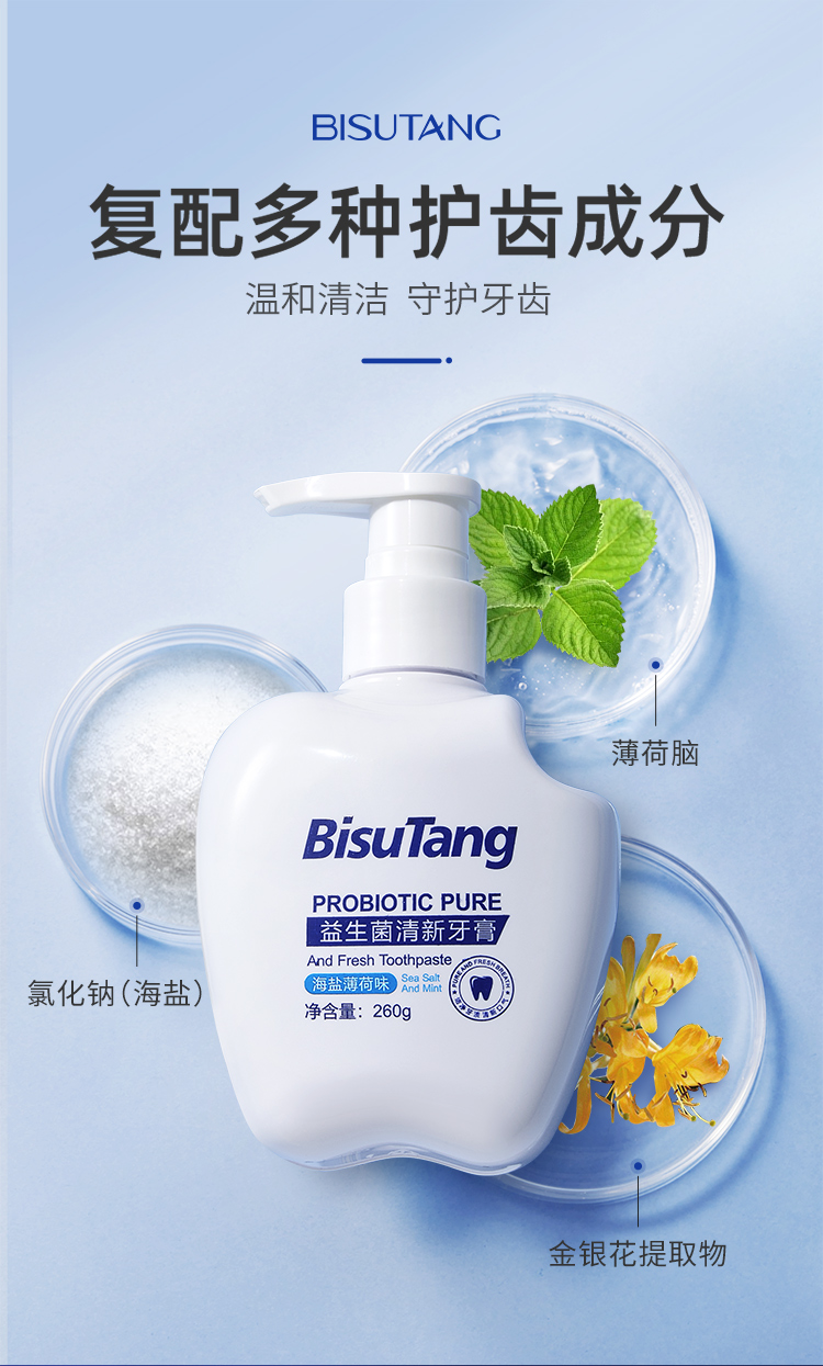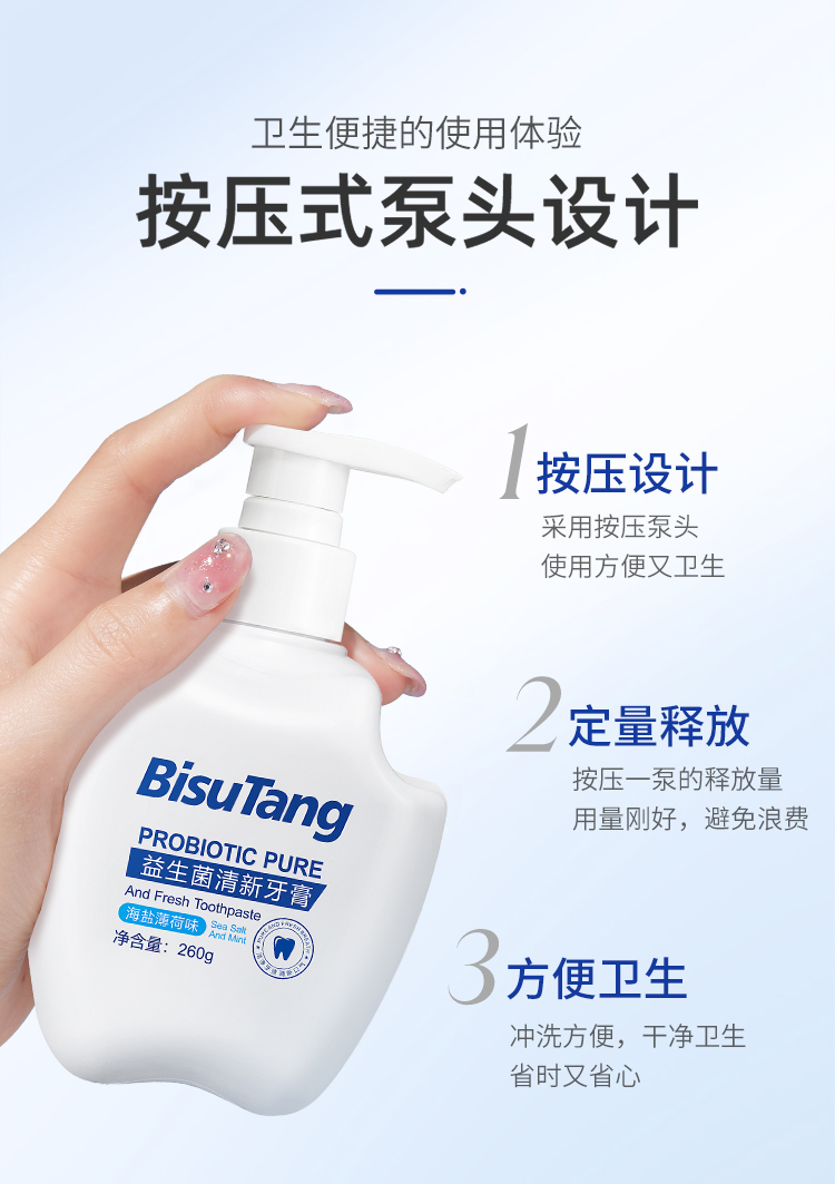 碧素堂BISUTANG 益生菌牙膏清新口气按压式大容量清洁口腔男女士专用