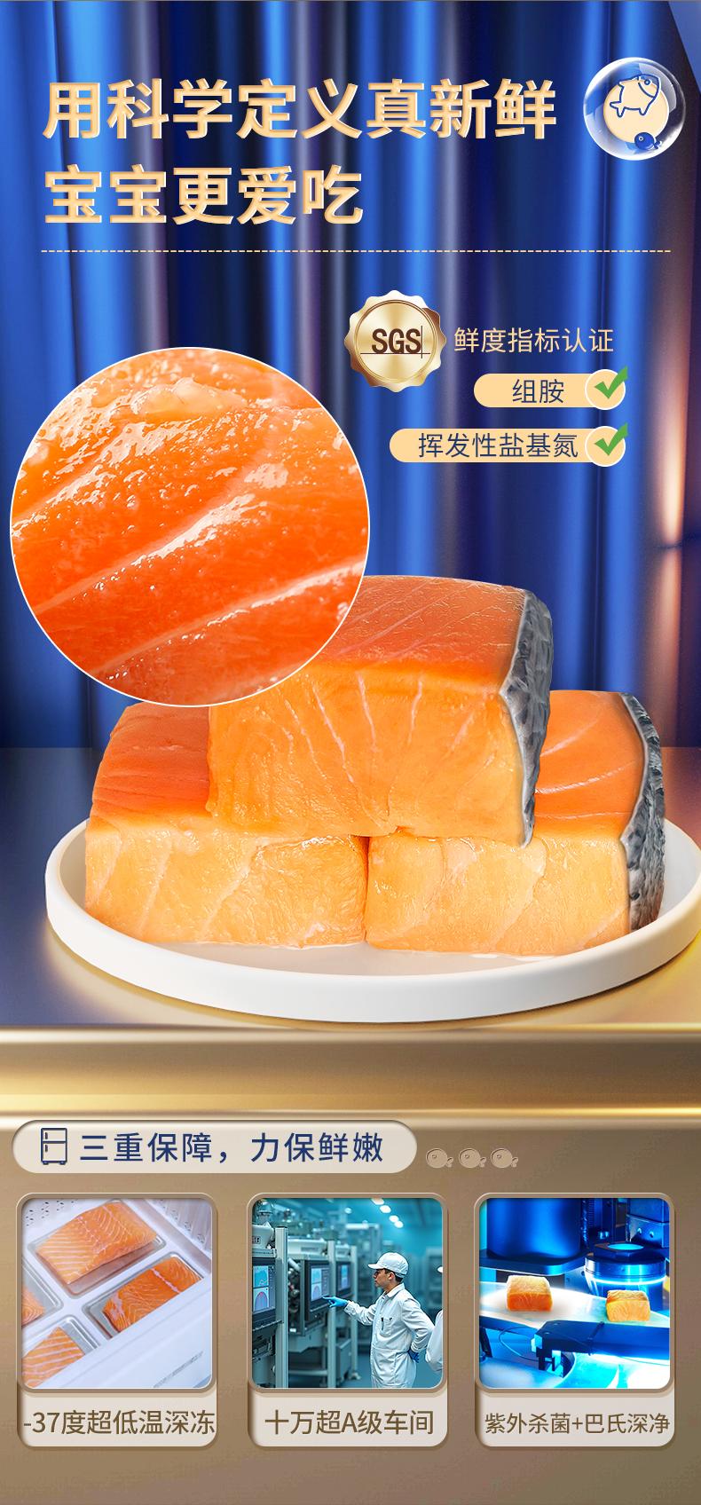 舔鲜大西洋三文鱼可做婴儿辅食无刺带皮新鲜鱼块宝宝可食用独立包装