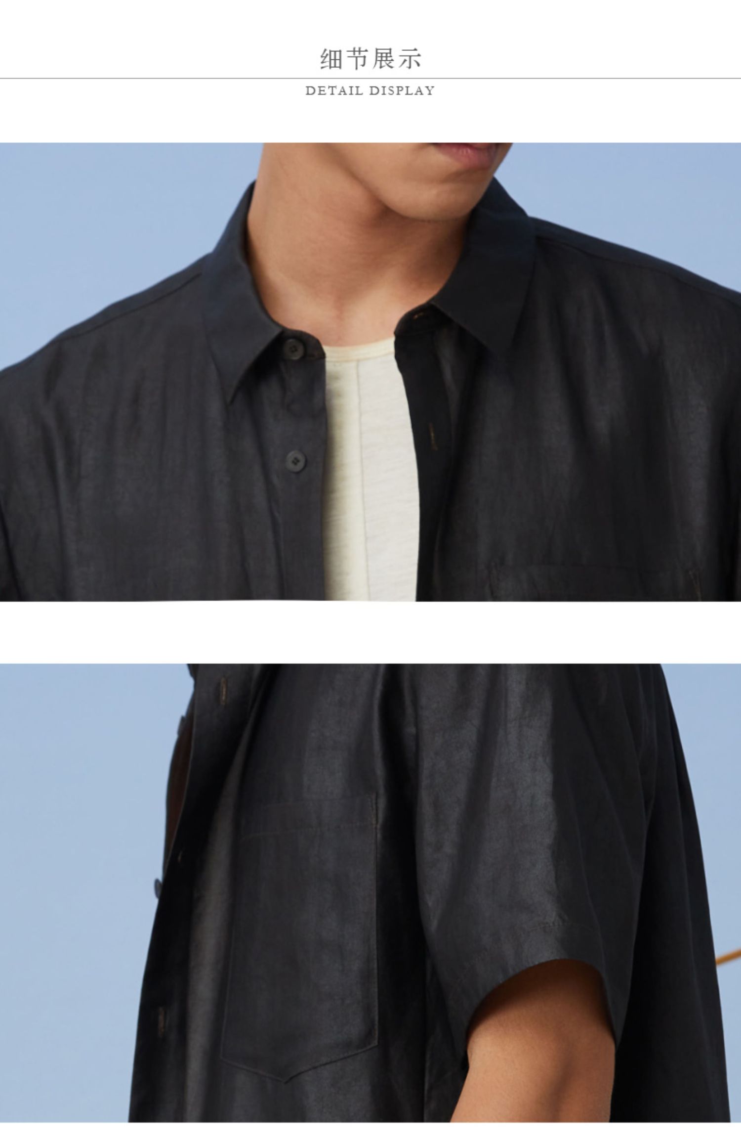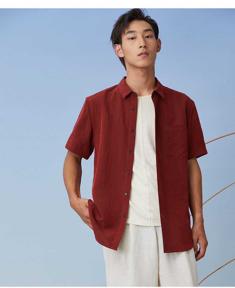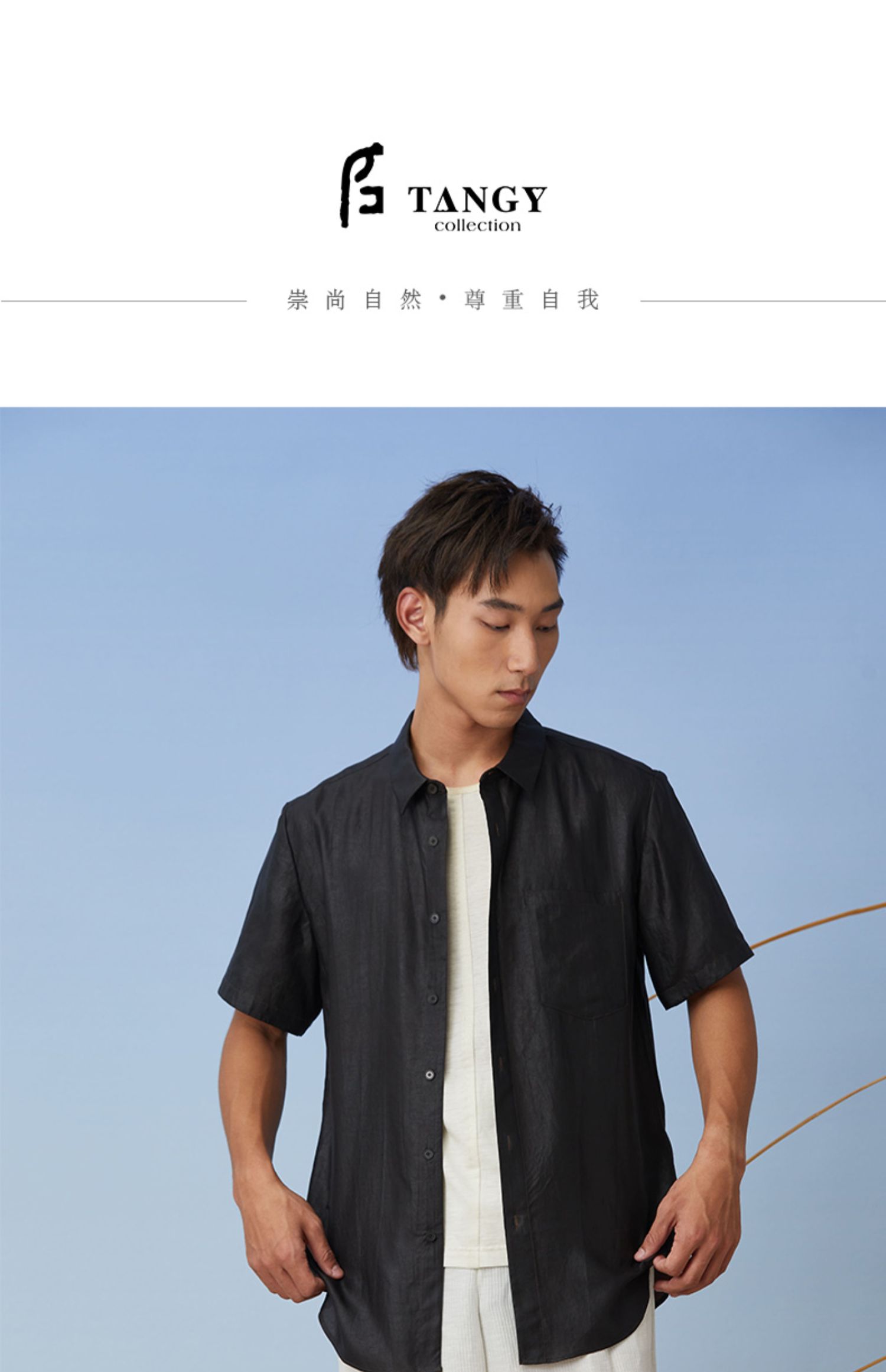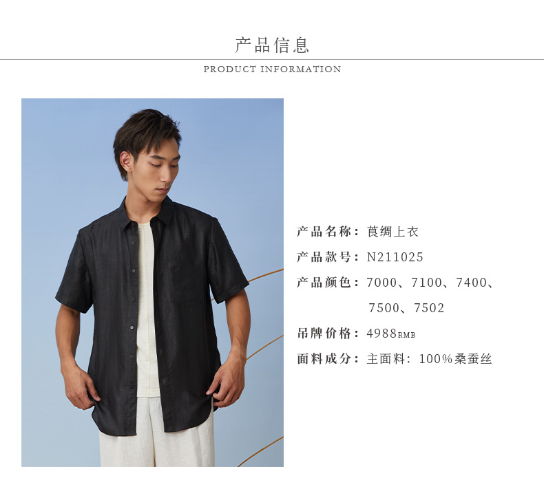 TANGY Collection天意精品2021年春夏新品真丝莨绸翻领短袖衬衫
