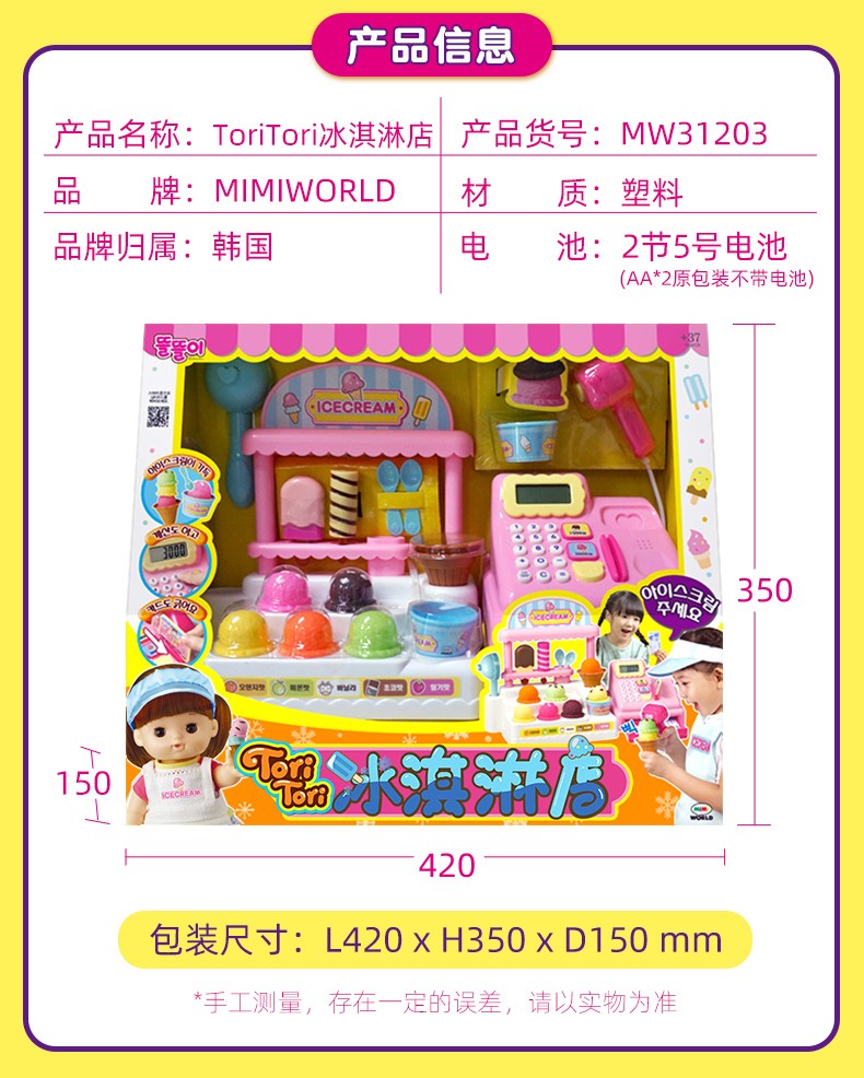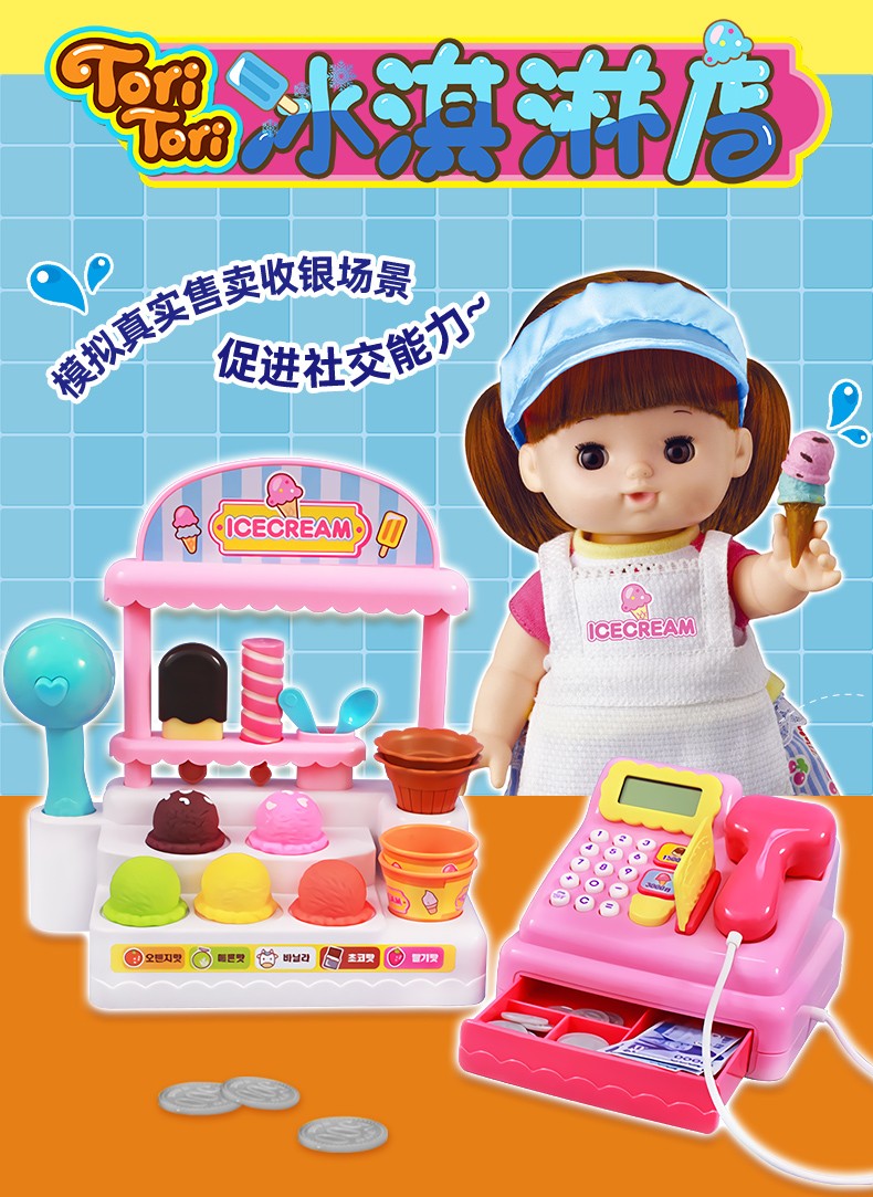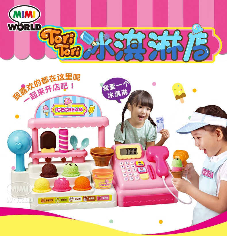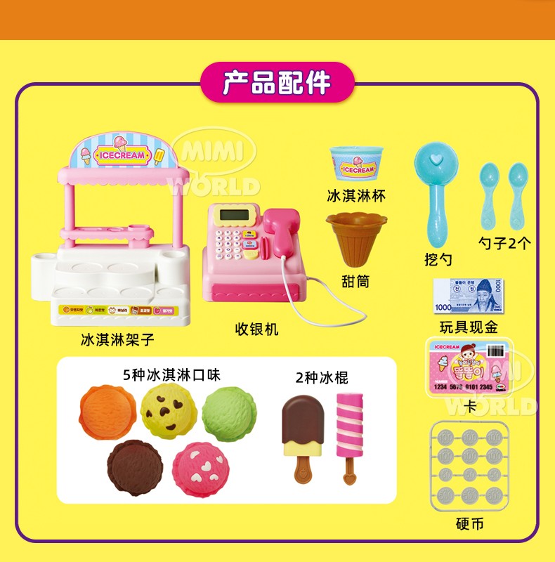 Mimiworld 女孩冰淇淋玩具冰激凌雪糕机过家家超市收银机收银台 3岁+