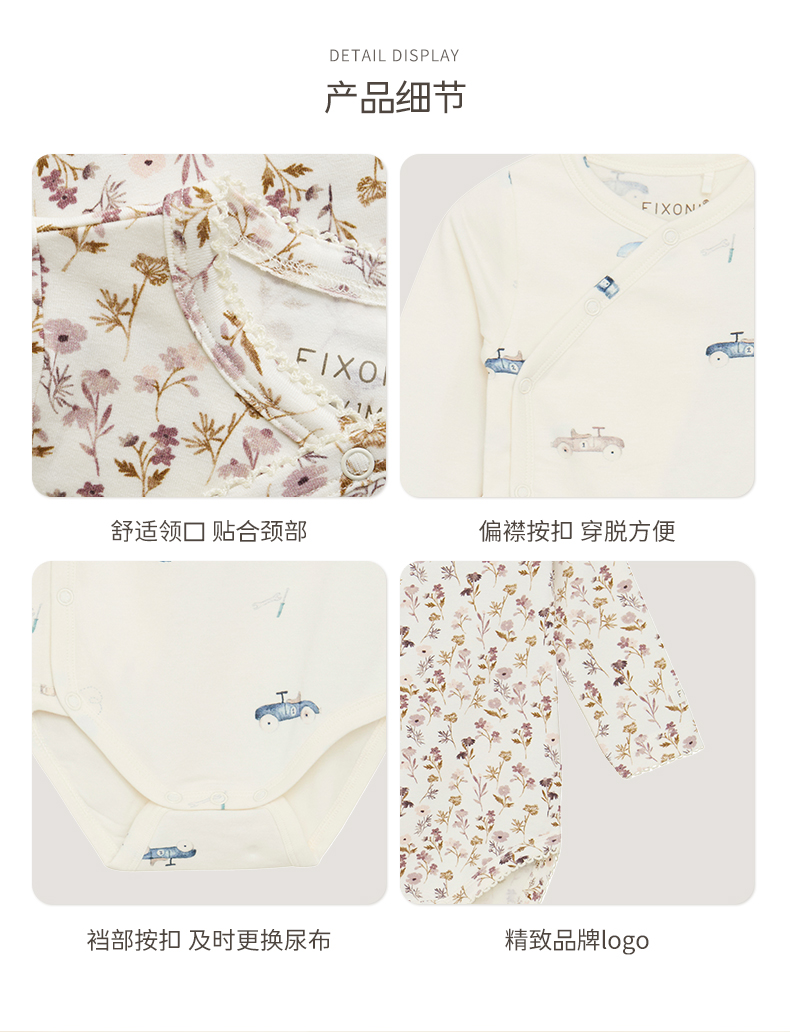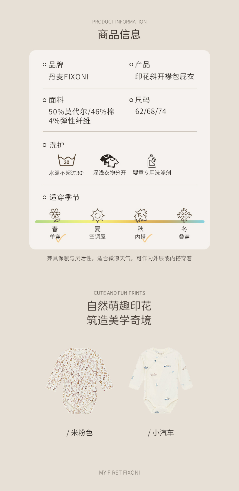 【云优选】FIXONI 婴幼儿印花斜开襟包屁衣-2025新品