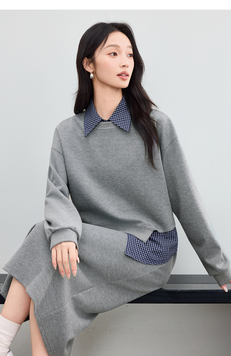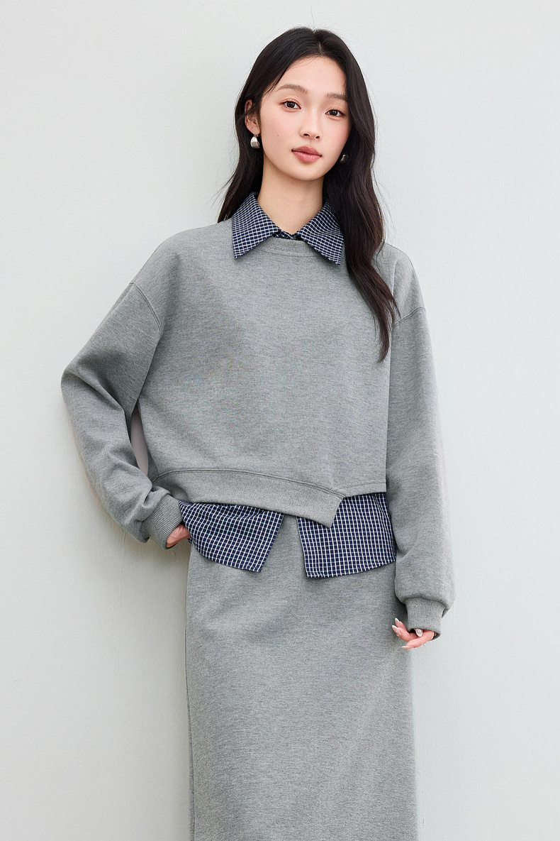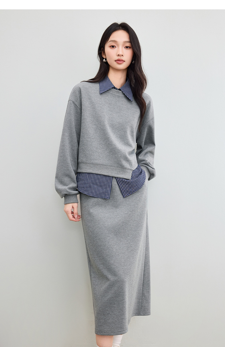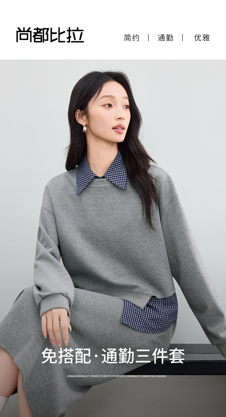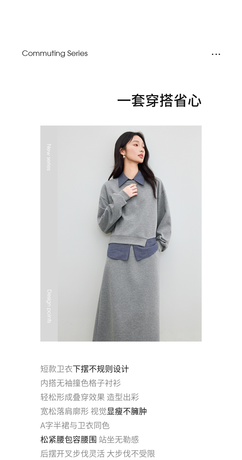 【内购】【免搭配三件套】通勤圆领宽松卫衣&翻领无袖格子衬衫&A字半身裙-153ZA2481