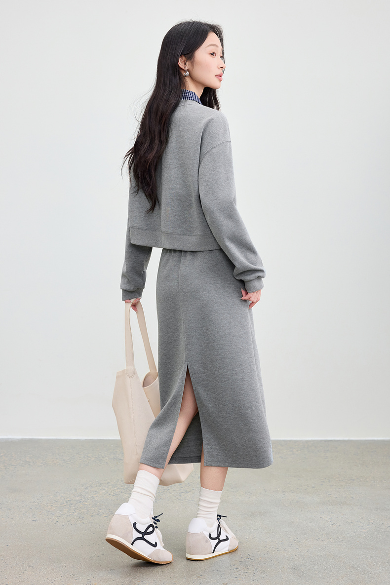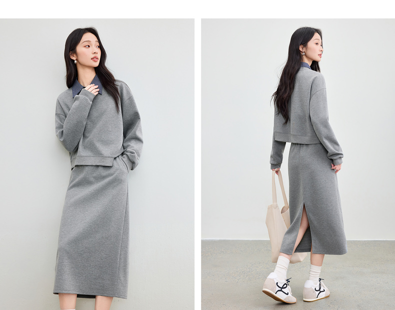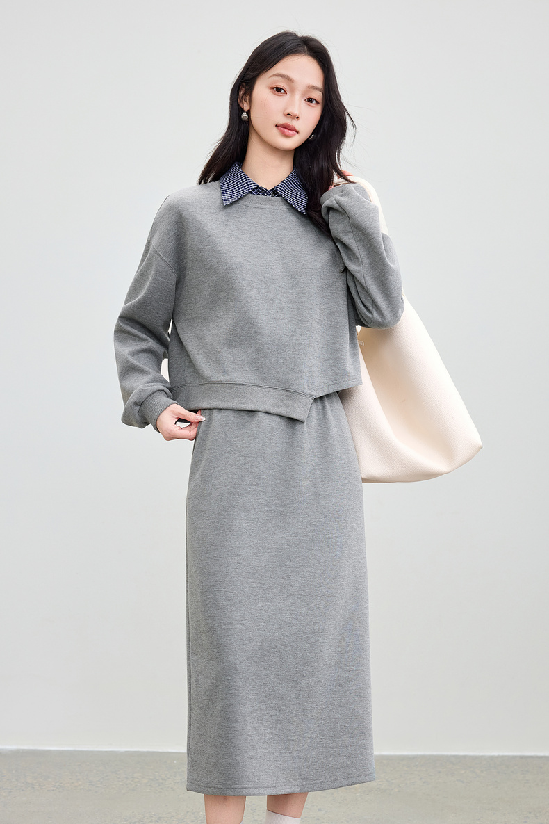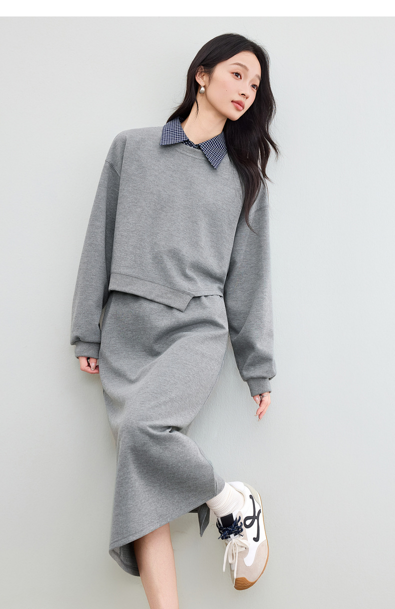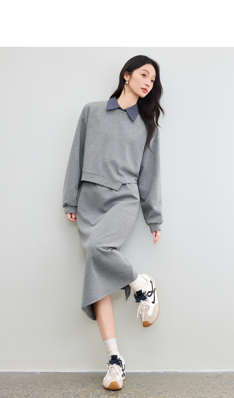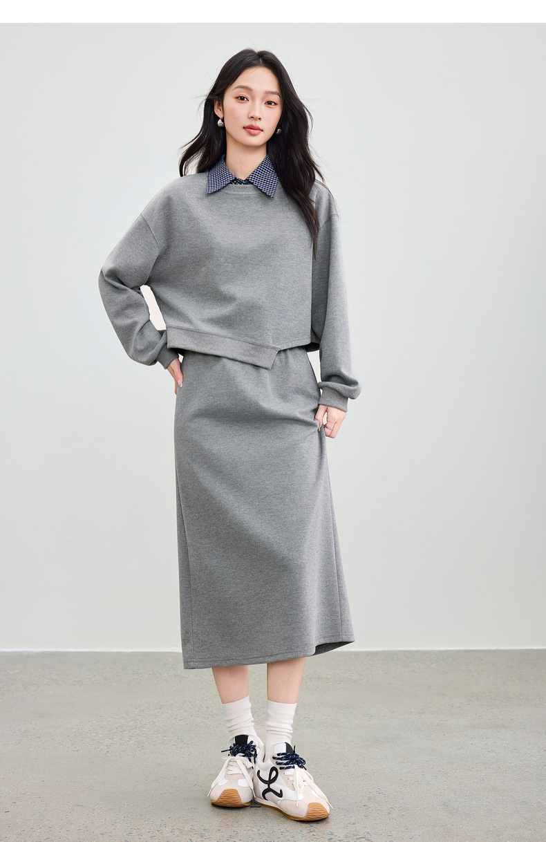 【内购】【免搭配三件套】通勤圆领宽松卫衣&翻领无袖格子衬衫&A字半身裙-153ZA2481