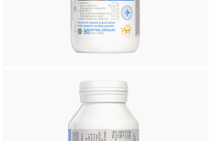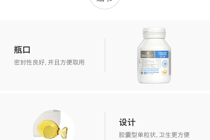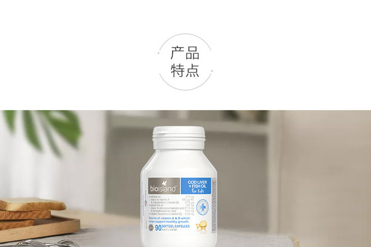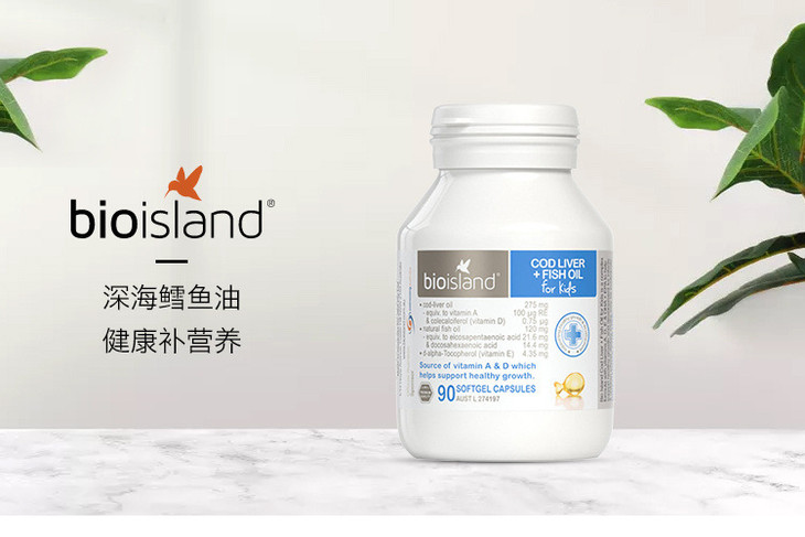 【BSC】澳洲Bioisland儿童宝宝婴幼儿鳕鱼肝鱼油90粒软胶囊鱼肝油护眼