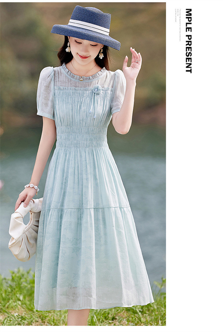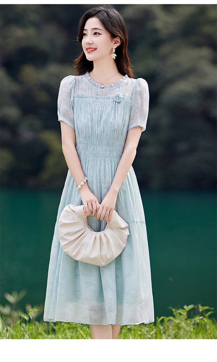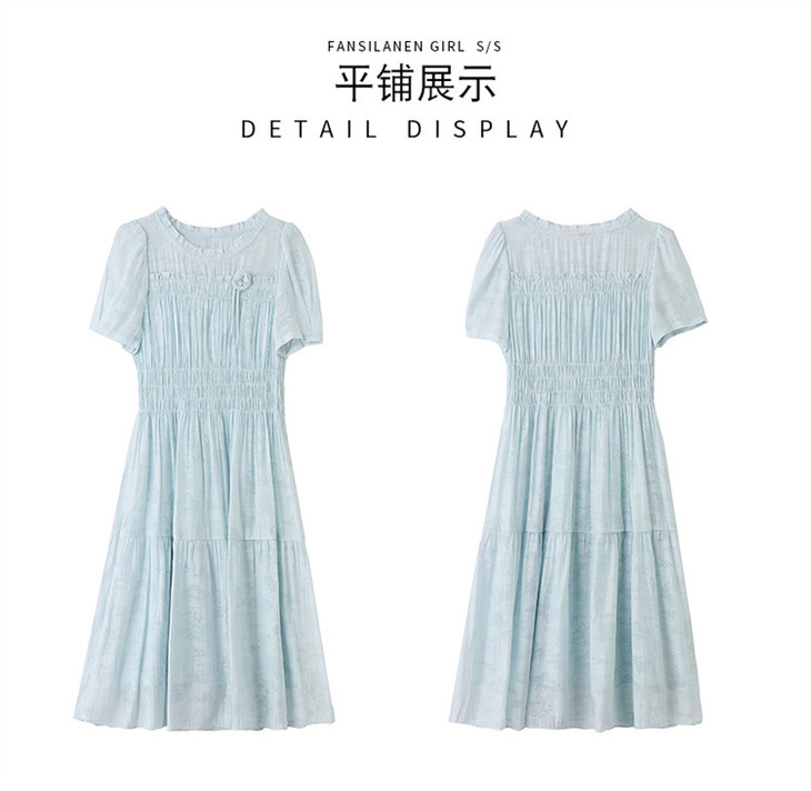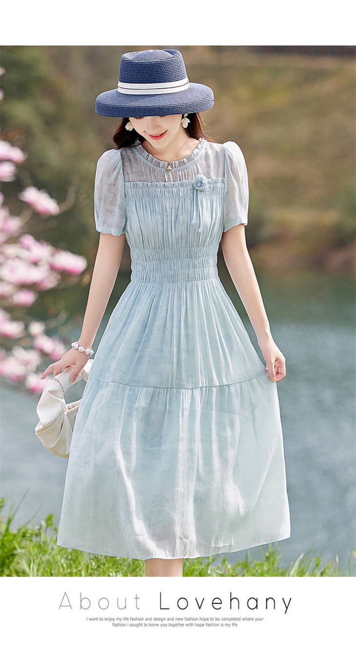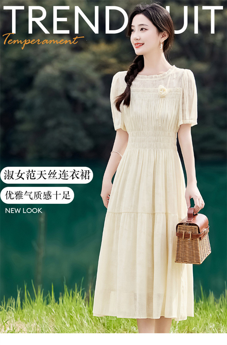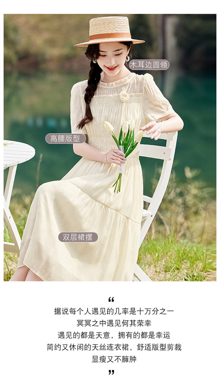 木耳花边圆领天丝高腰显瘦连衣裙MLJL88005