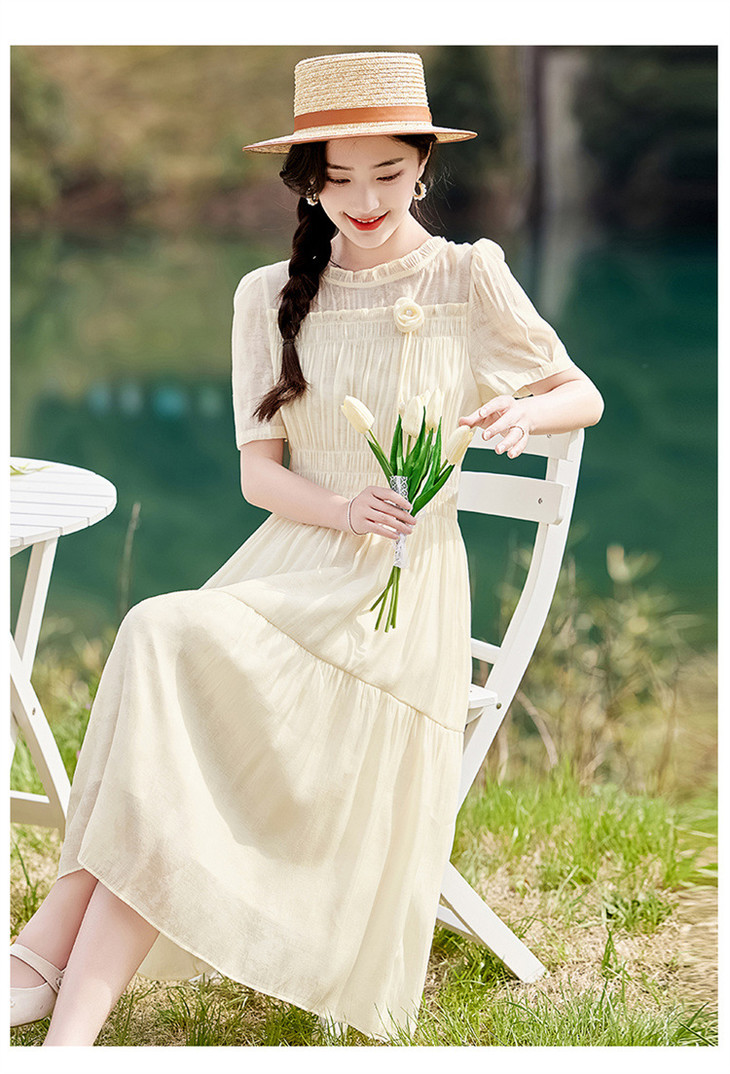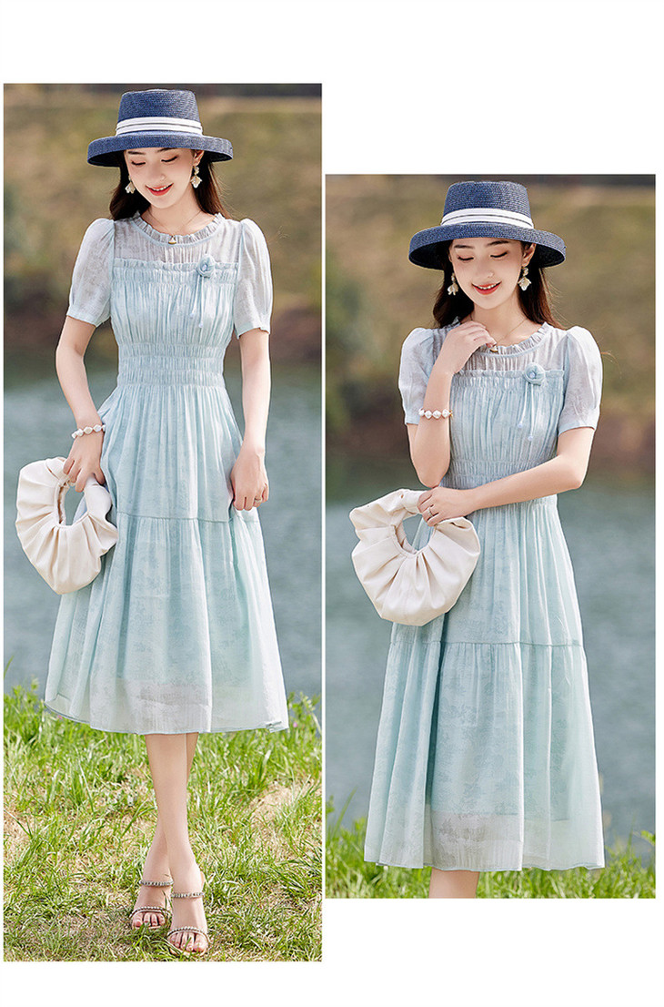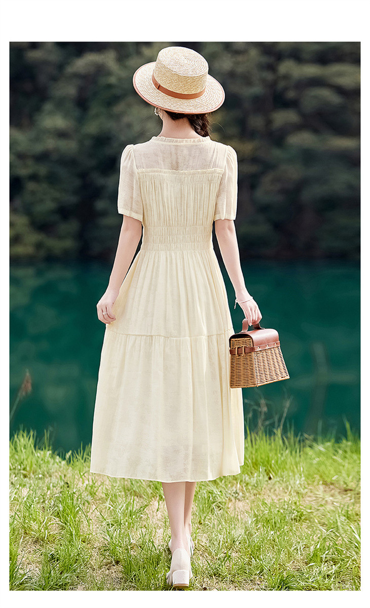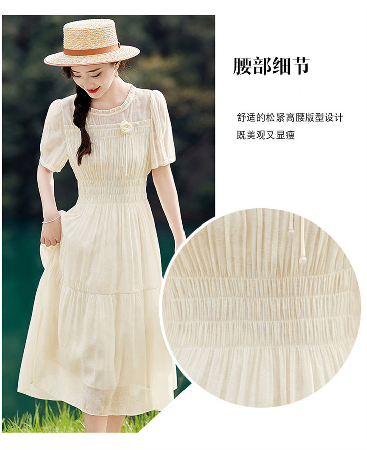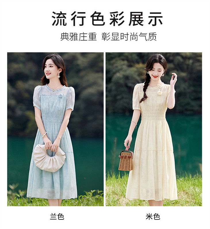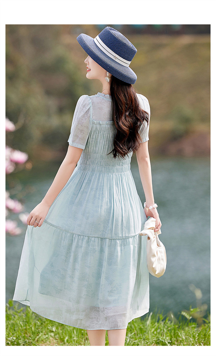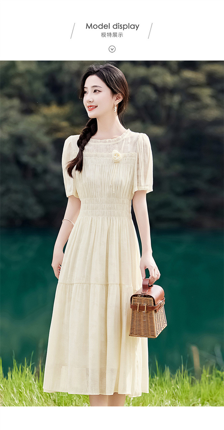 木耳花边圆领天丝高腰显瘦连衣裙MLJL88005