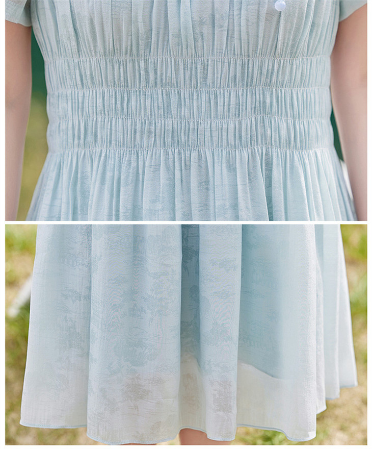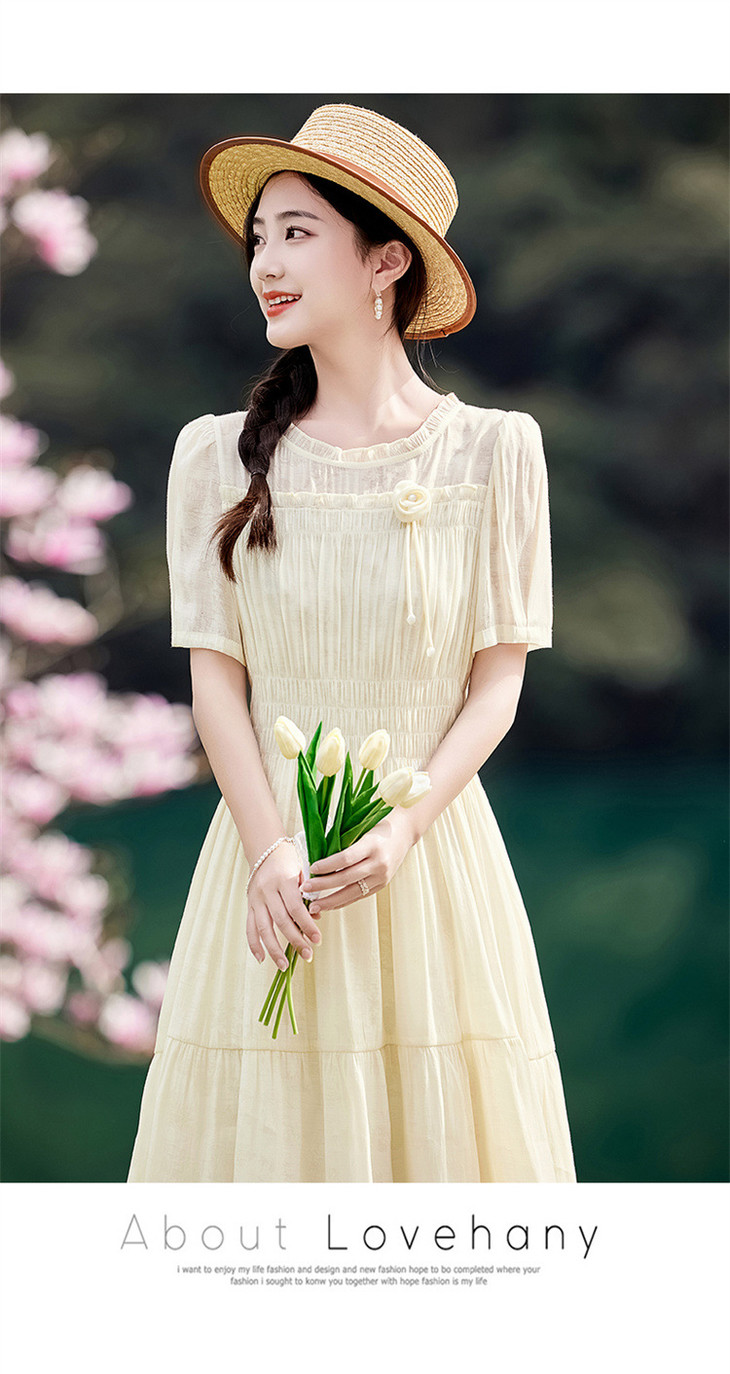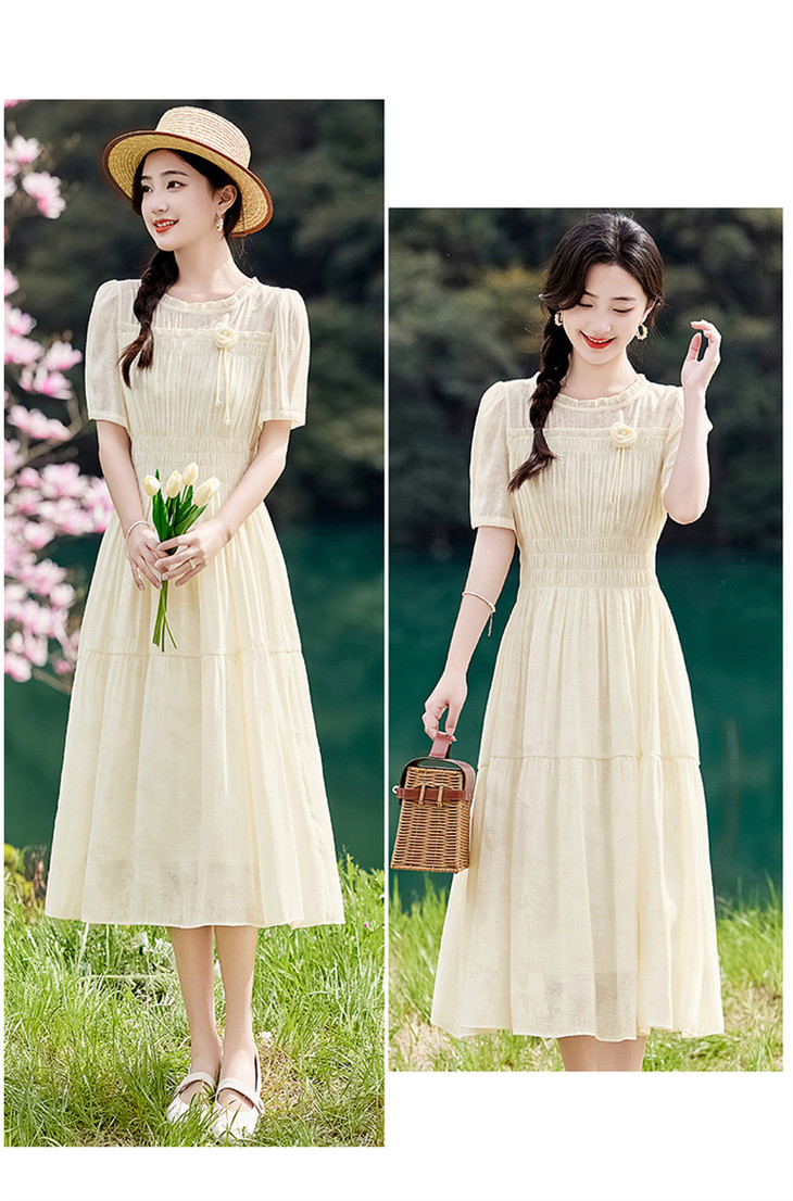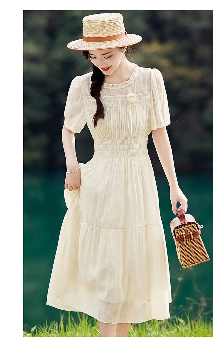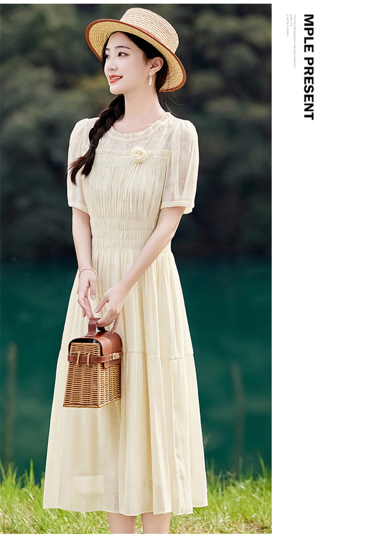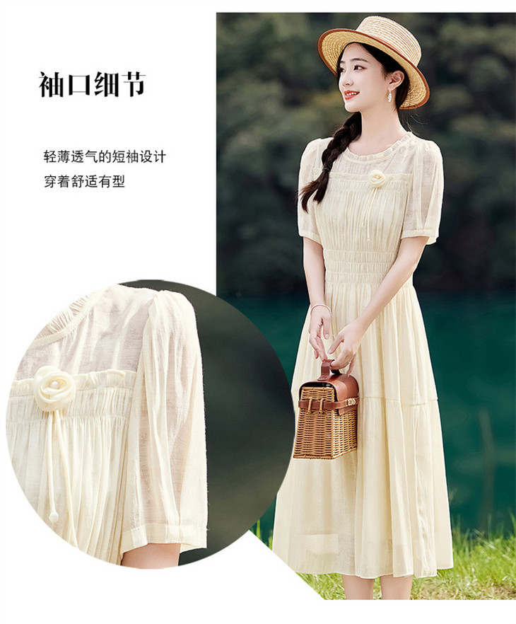 木耳花边圆领天丝高腰显瘦连衣裙MLJL88005