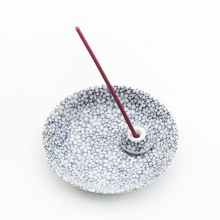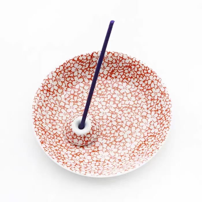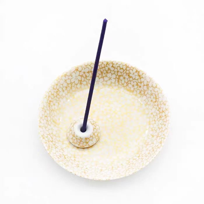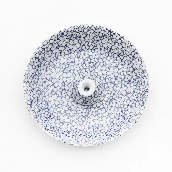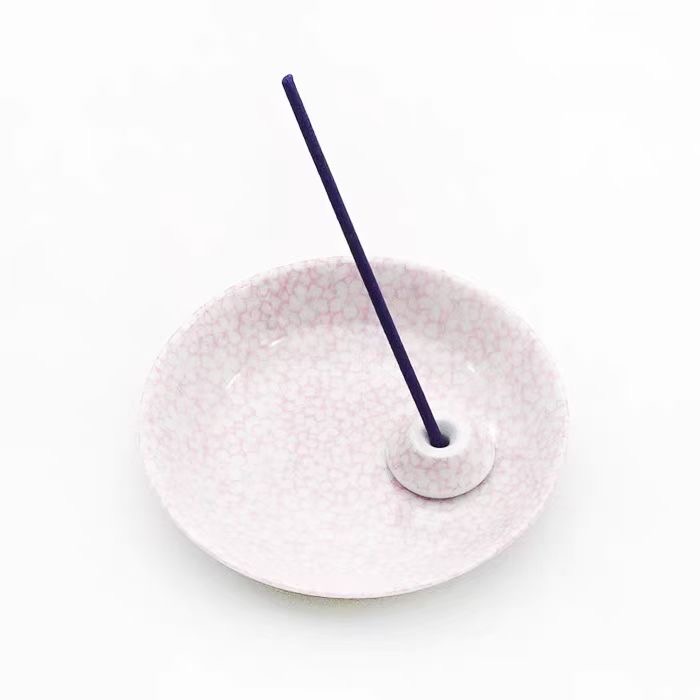 日本香彩堂樱花瓣纹美浓烧陶瓷香插托盘
