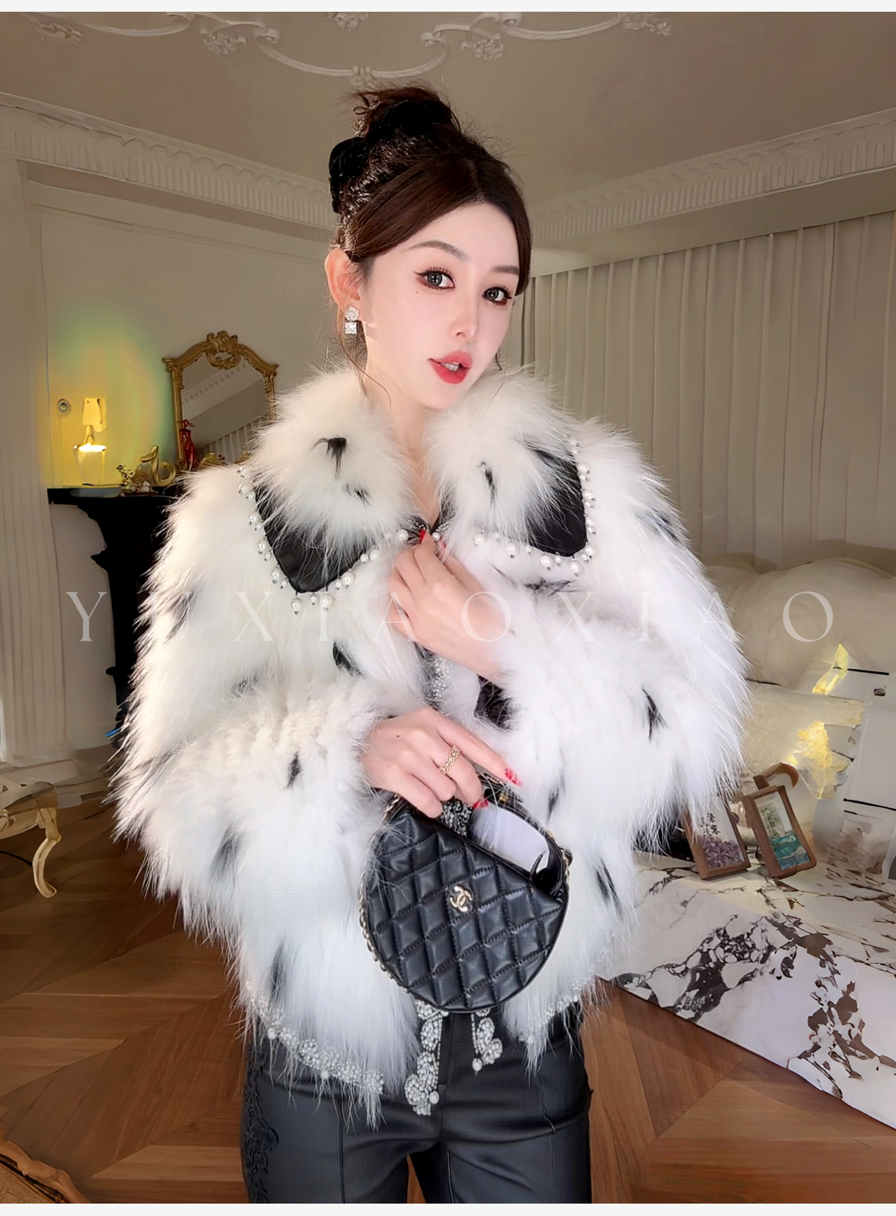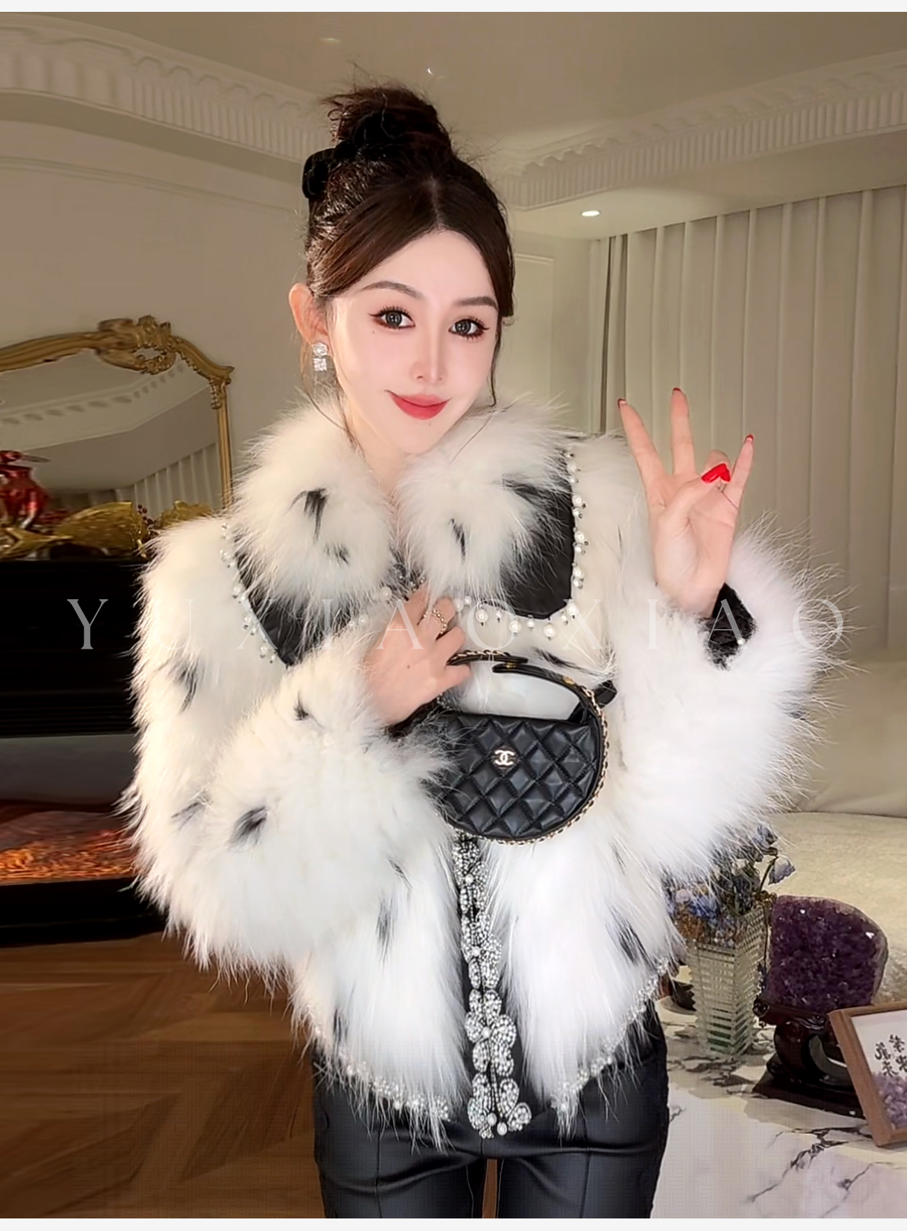 余潇潇【浮世恋曲】奢华高级感经典貉子毛翻领宽松皮草羽绒外套