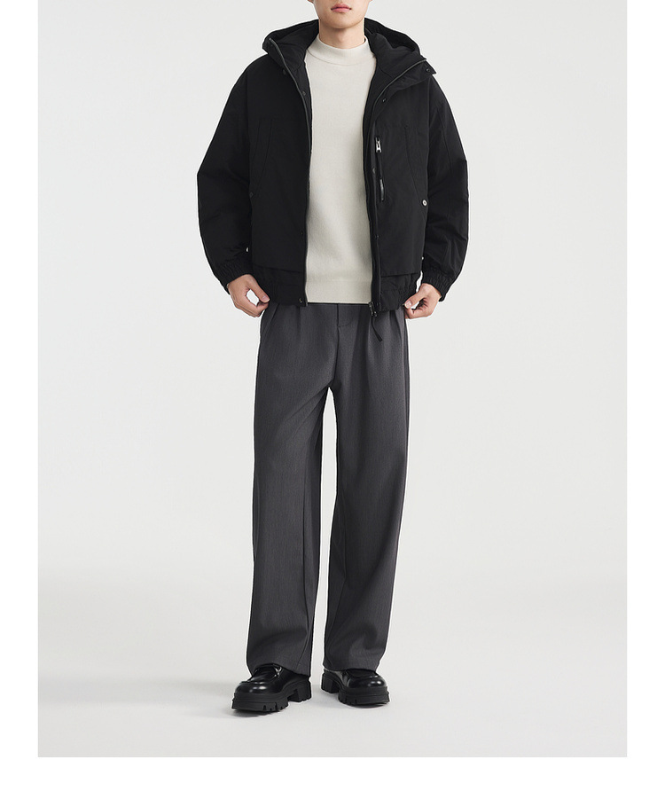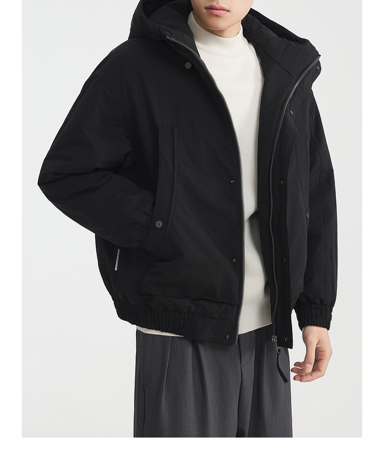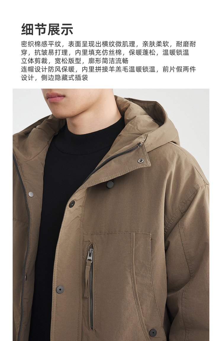 墨麦客男装简约纯色连帽棉衣男冬款羊羔毛内里男士棉服87723