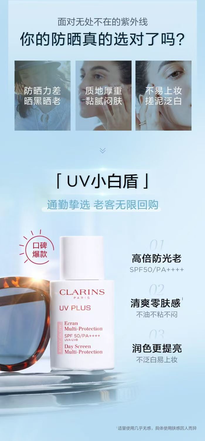 【新春特惠】CLARINS 娇韵诗防晒乳SPF50 润粉色 透明色 50ML 隔离霜素颜霜清爽