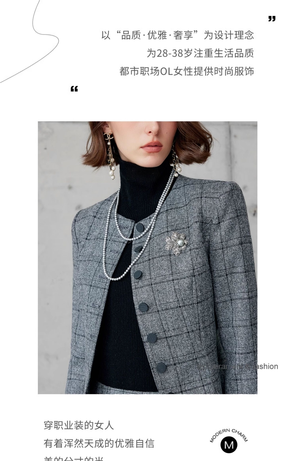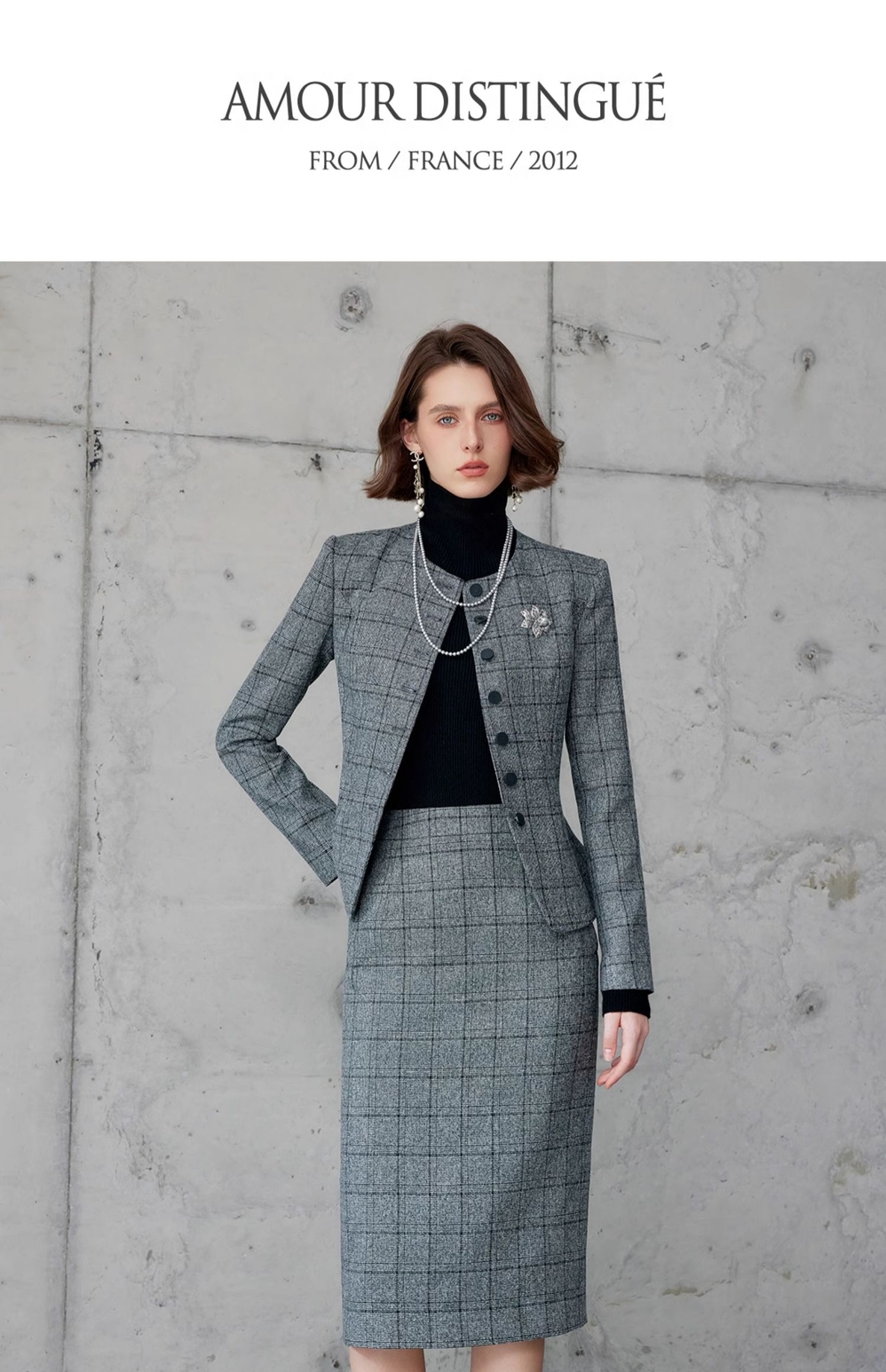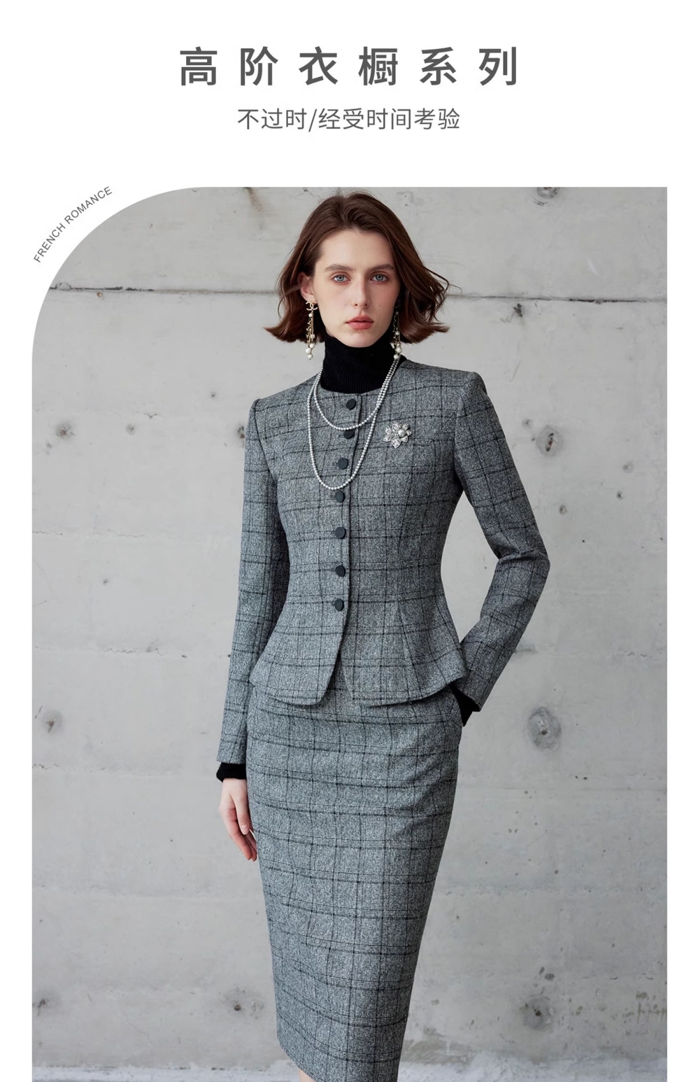 IWY/灰色格纹长袖西装套裙气质小香风时尚通勤干练两件套职业裙CS2101