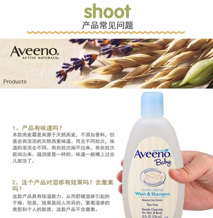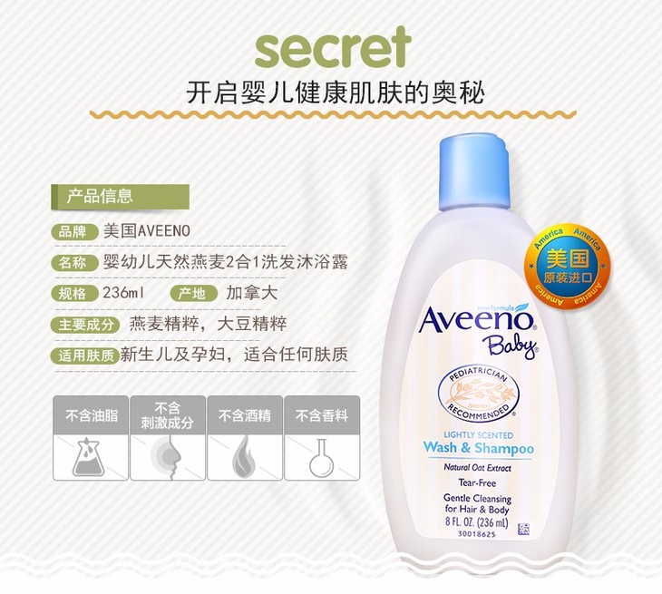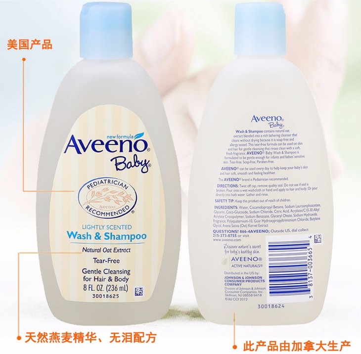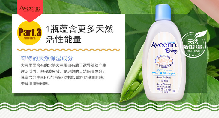 【保税仓】美国Aveeno Baby艾维诺宝宝天然燕麦洗发沐浴液236ml