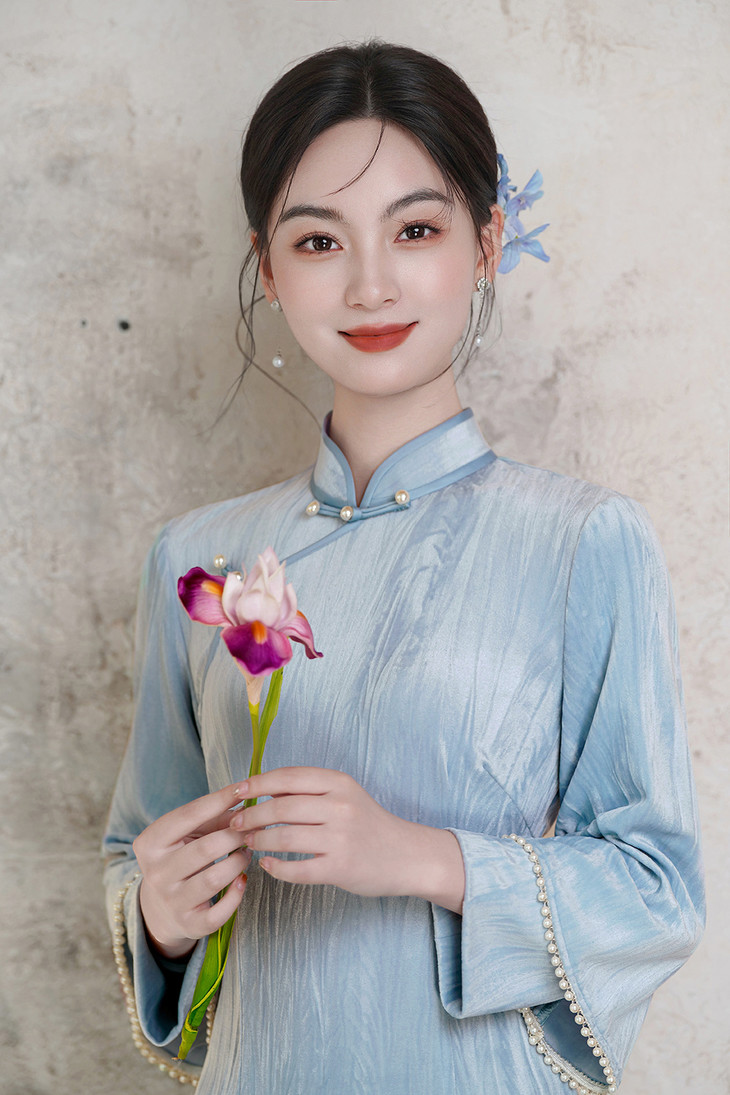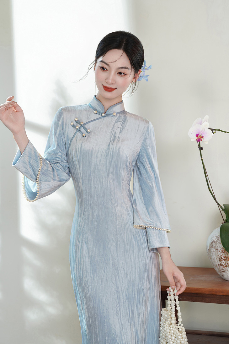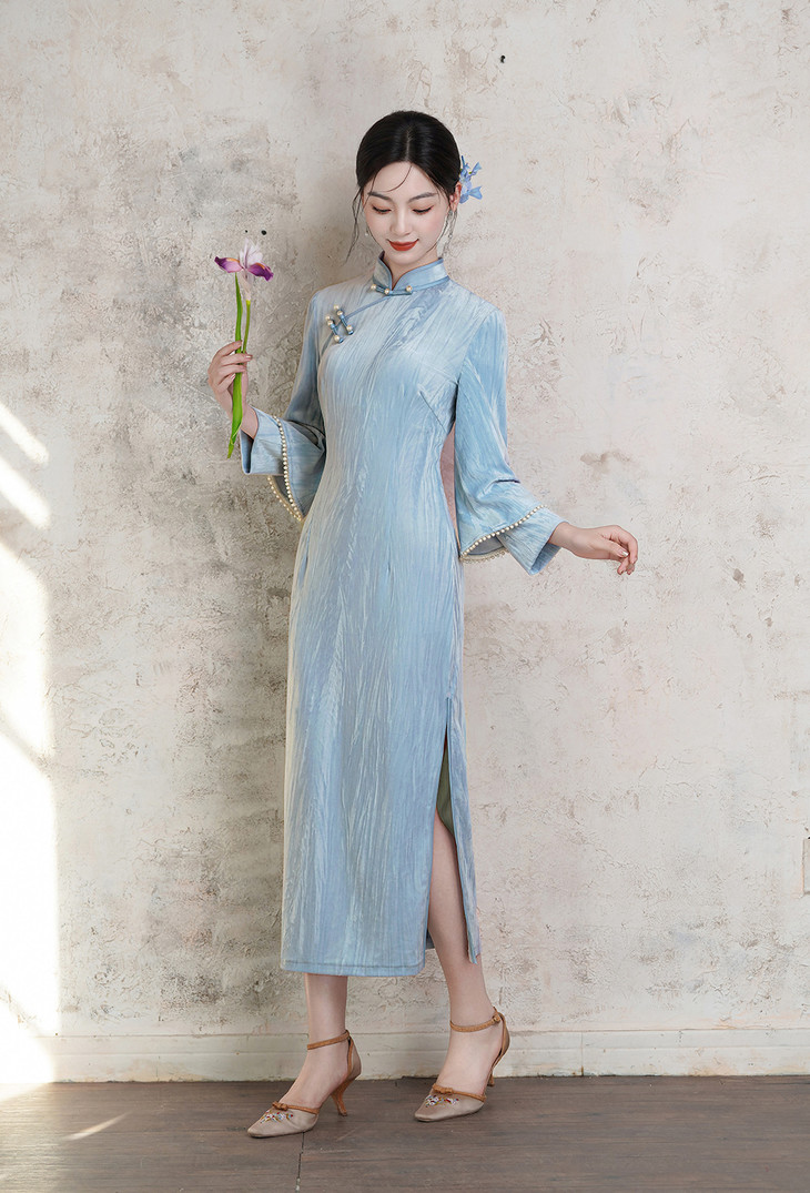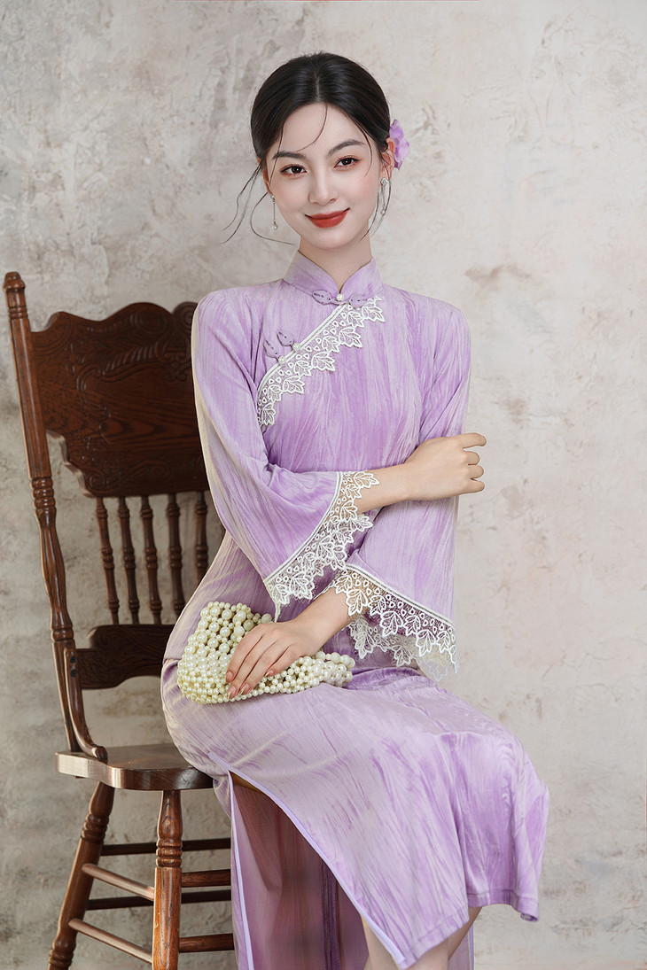 2025年秋季新款改常蕾丝包边年轻款丝绒倒大袖旗袍XL1612