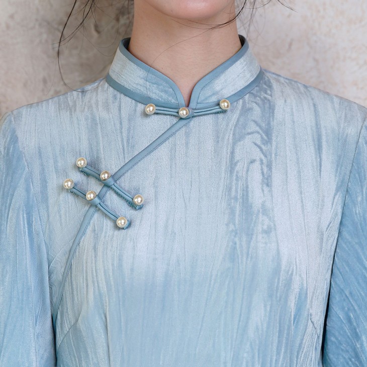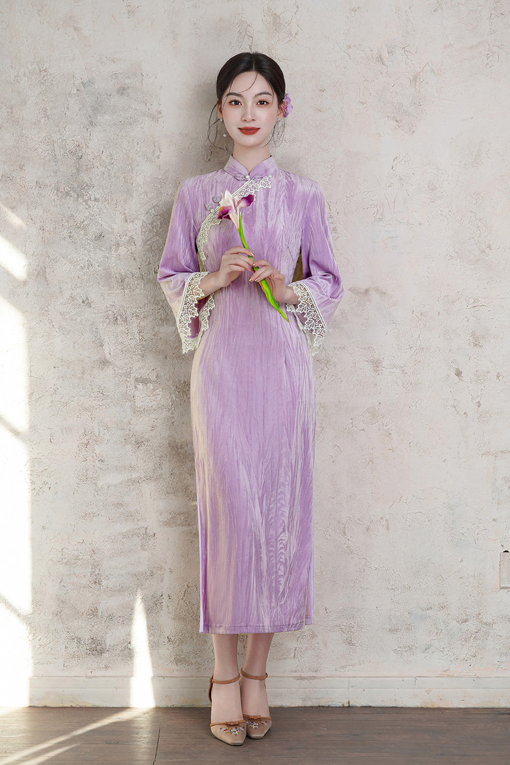 2025年秋季新款改常蕾丝包边年轻款丝绒倒大袖旗袍XL1612 商品图3