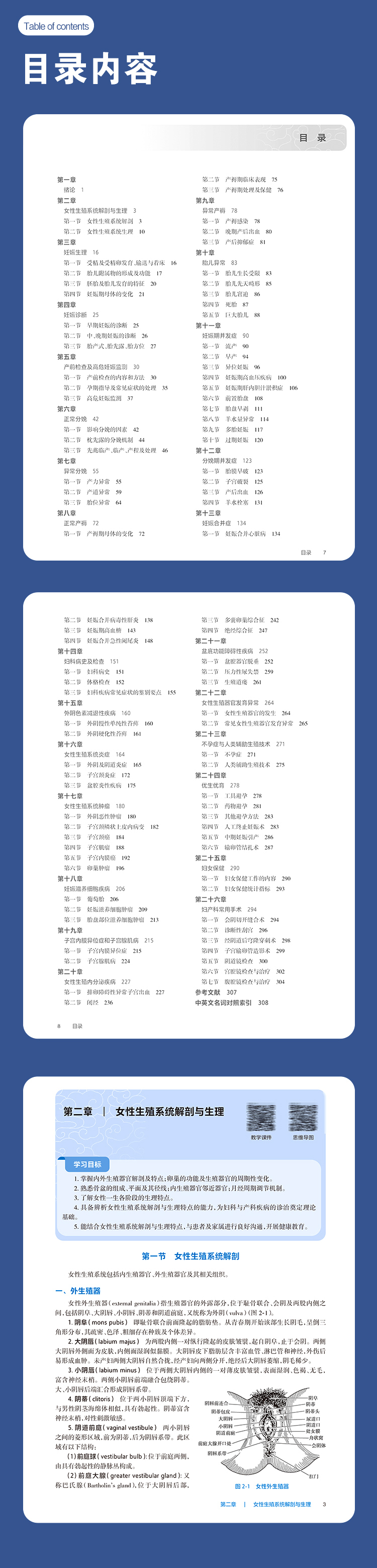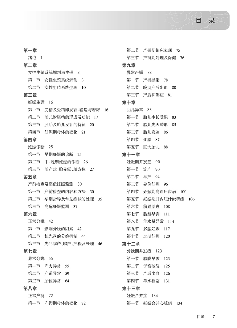 第一章绪论/1 第二章女性生殖系统解剖与生理/3 第一节女性生殖系统解剖/3 第二节女性生殖系统生理/10 第三章妊娠生理/16 第一节受精及受精卵发育、输送与着床/16 第二节胎儿附属物的形成及功能/17 第三节胚胎及胎儿发育的特征/20 第四节妊娠期母体的变化/21 第四章妊娠诊断/25 第一节早期妊娠的诊断/25 第二节中、晚期妊娠的诊断/26 第三节胎产式、胎先露、胎方位/27 第五章产前检查及高危妊娠监测/30 第一节产前检查的内容和方法/30 第二节孕期指导及常见症状的处理/35 第三节高危妊娠监测/37 第六章正常分娩/42 第一节影响分娩的因素/42 第二节枕先露的分娩机制/44 第三节先兆临产、临产、产程及处理/46 第七章异常分娩/55 第一节产力异常/55 第二节产道异常/59 第三节胎位异常/64 第八章正常产褥/72 第一节产褥期母体的变化/72 第二节产褥期临床表现/75 第三节产褥期处理及保健/76 第九章异常产褥/78 第一节产褥感染/78 第二节晚期产后出血/80 第三节产后抑郁症/81 第十章胎儿异常/83 第一节胎儿生长受限/83 第二节胎儿先天畸形/85 第三节胎儿窘迫/86 第四节死胎/87 第五节巨大胎儿/88 第十一章妊娠期并发症/90 第一节流产/90 第二节早产/94 第三节异位妊娠/96 第四节妊娠期高血压疾病/100 第五节妊娠期肝内胆汁淤积症/106 第六节前置胎盘/108 第七节胎盘早剥/111 第八节羊水量异常/114 第九节多胎妊娠/117 第十节过期妊娠/120 第十二章分娩期并发症/123 第一节胎膜早破/123 第二节子宫破裂/125 第三节产后出血/126 第四节羊水栓塞/131 第十三章妊娠合并症/134 第一节妊娠合并心脏病/134 第二节妊娠合并病毒性肝炎/138 第三节妊娠期高血糖/143 第四节妊娠合并急性阑尾炎/148 第十四章妇科病史及检查/151 第一节妇科病史/151 第二节体格检查/152 第三节妇科疾病常见症状的鉴别要点/155 第十五章外阴色素减退性疾病/160 第一节外阴慢性单纯性苔藓/160 第二节外阴硬化性苔藓/161 第十六章女性生殖系统炎症/164 第一节外阴及阴道炎症/165 第二节子宫颈炎症/172 第三节盆腔炎性疾病/175 第十七章女性生殖系统肿瘤/180 第一节外阴恶性肿瘤/180 第二节子宫颈鳞状上皮内病变/182 第三节子宫颈癌/184 第四节子宫肌瘤/188 第五节子宫内膜癌/192 第六节卵巢肿瘤/196 第十八章妊娠滋养细胞疾病/206 第一节葡萄胎/206 第二节妊娠滋养细胞肿瘤/209 第三节胎盘部位滋养细胞肿瘤/213 第十九章子宫内膜异位症和子宫腺肌病/215 第一节子宫内膜异位症/215 第二节子宫腺肌病/224 第二十章女性生殖内分泌疾病/227 第一节排卵障碍性异常子宫出血/227 第二节闭经/236 第三节多囊卵巢综合征/242 第四节绝经综合征/247 第二十一章盆底功能障碍性疾病/252 第一节盆腔器官脱垂/252 第二节压力性尿失禁/259 第三节生殖道瘘/261 第二十二章女性生殖器官发育异常/264 第一节女性生殖器官的发生/264 第二节常见女性生殖器官发育异常/265 第二十三章不孕症与人类辅助生殖技术/271 第一节不孕症/271 第二节人类辅助生殖技术/275 第二十四章优生优育/278 第一节工具避孕/278 第二节药物避孕/281 第三节其他避孕方法/283 第四节人工终止妊娠术/283 第五节中期妊娠引产/286 第六节输卵管结扎术/287 第二十五章妇女保健/290 第一节妇女保健工作的内容/290 第二节妇女保健统计指标/293 第二十六章妇产科常用手术/294 第一节会阴切开缝合术/294 第二节诊断性刮宫/296 第三节经阴道后穹隆穿刺术/298 第四节子宫输卵管造影术/299 第五节阴道镜检查/300 第六节宫腔镜检查与治疗/302 第七节腹腔镜检查与治疗/304 参考文献/307 中英文名词对照索引/308