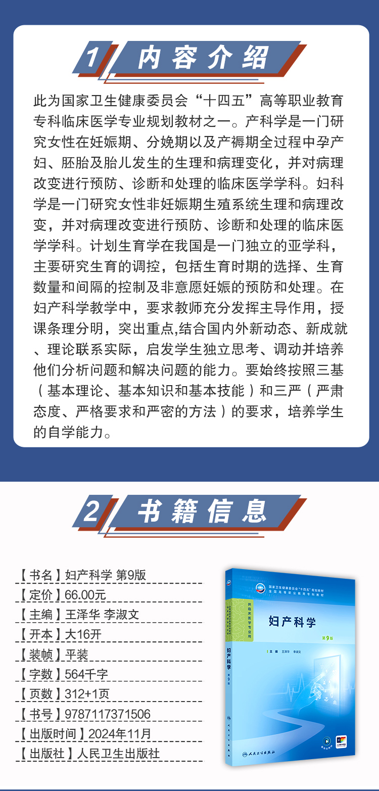 妇产科学 第9九版 全国高等职业教育专科教材十四五规划教材 王泽华 李淑文主编 供临床医学专业用 人民卫生出版社9787117371506