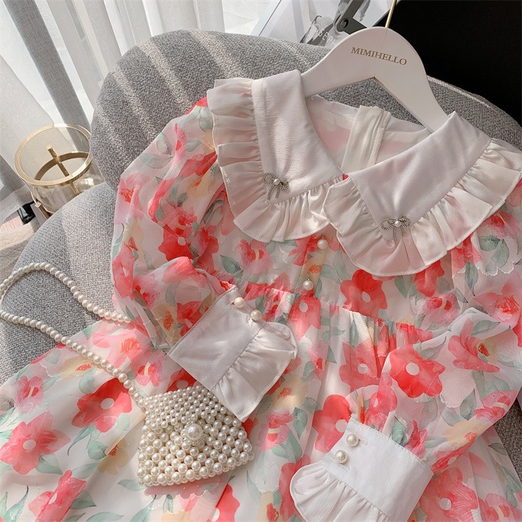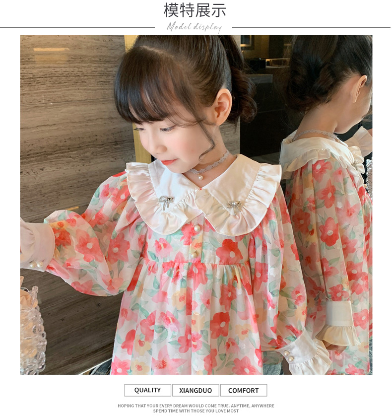 【品名】FISH CHILDE花仙子雪纺满印公主裙