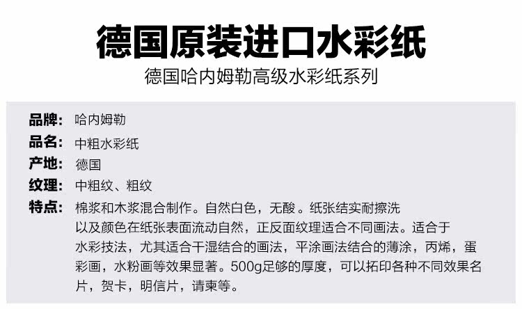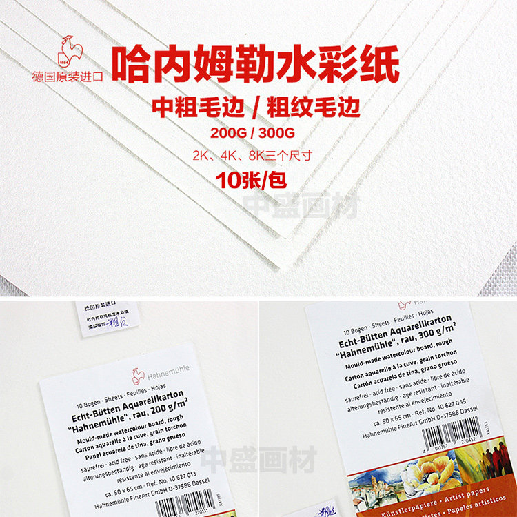 德国哈内姆勒Hahnemuhle中粗纹/粗纹毛边水彩画纸 一包10张