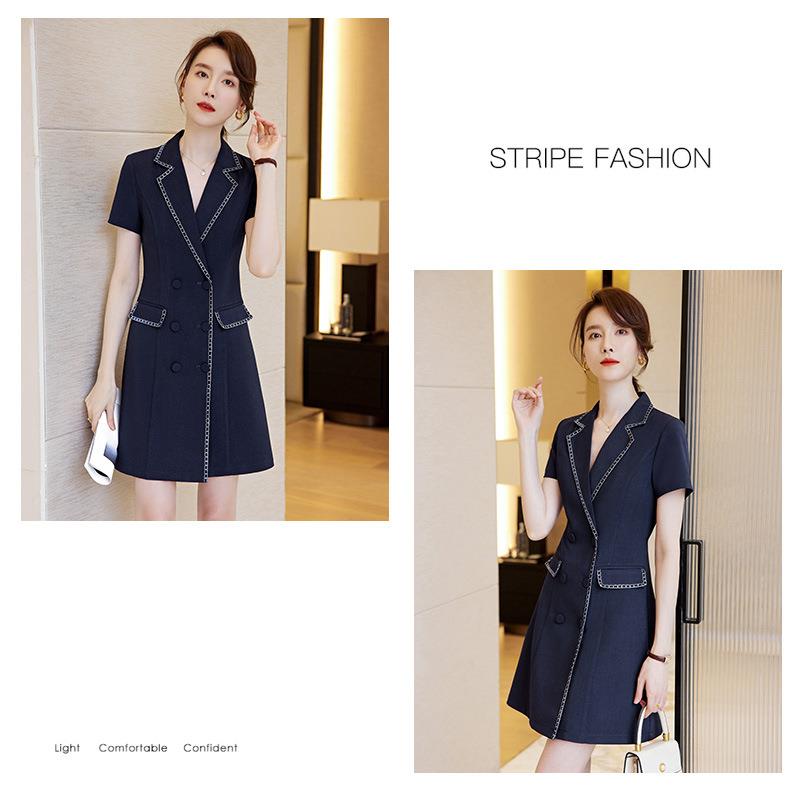 娜璐多 高级感通勤西装连衣裙女拼接收腰显瘦裙子2023夏季新款轻熟气质女