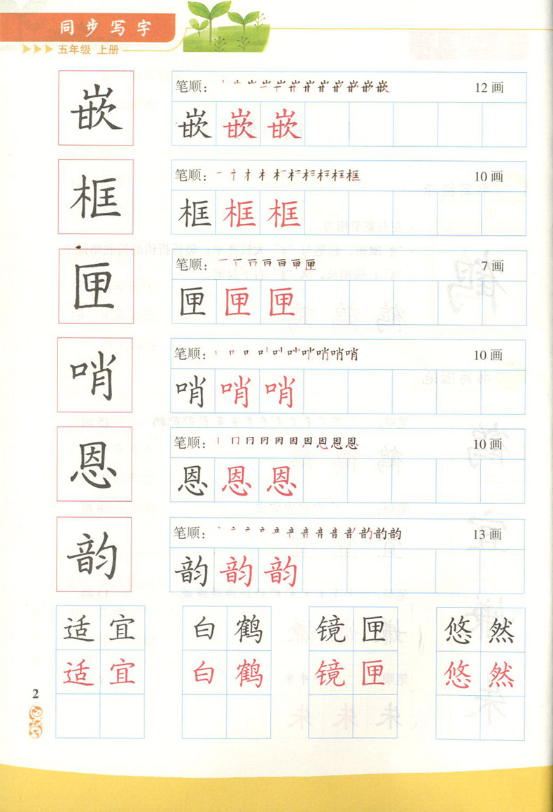 义务教育课本 同步写字 5年级上册/五年级第一学 部编版 上海小学语文教材同步练习字帖 写字课课练 人民教育出版社