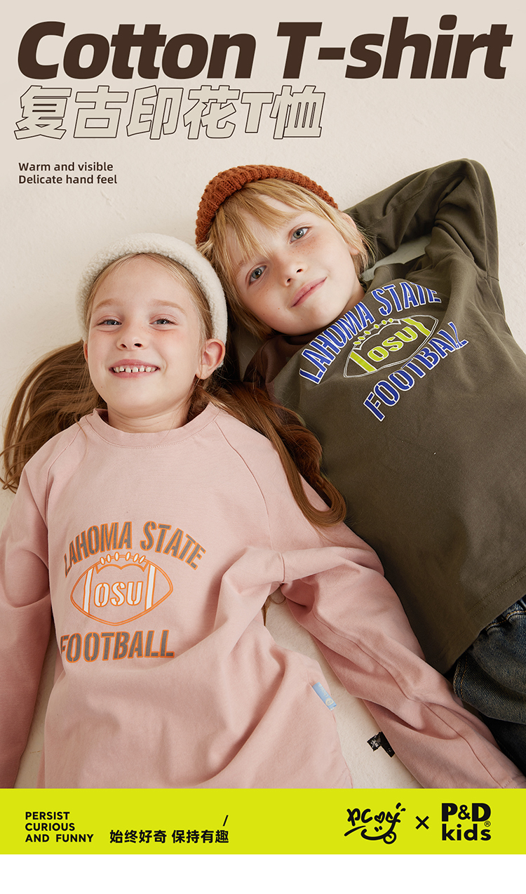 【秋上新】【磨毛精梳棉 又软又有型】儿童趣味复古印花长袖T恤PQTX2321