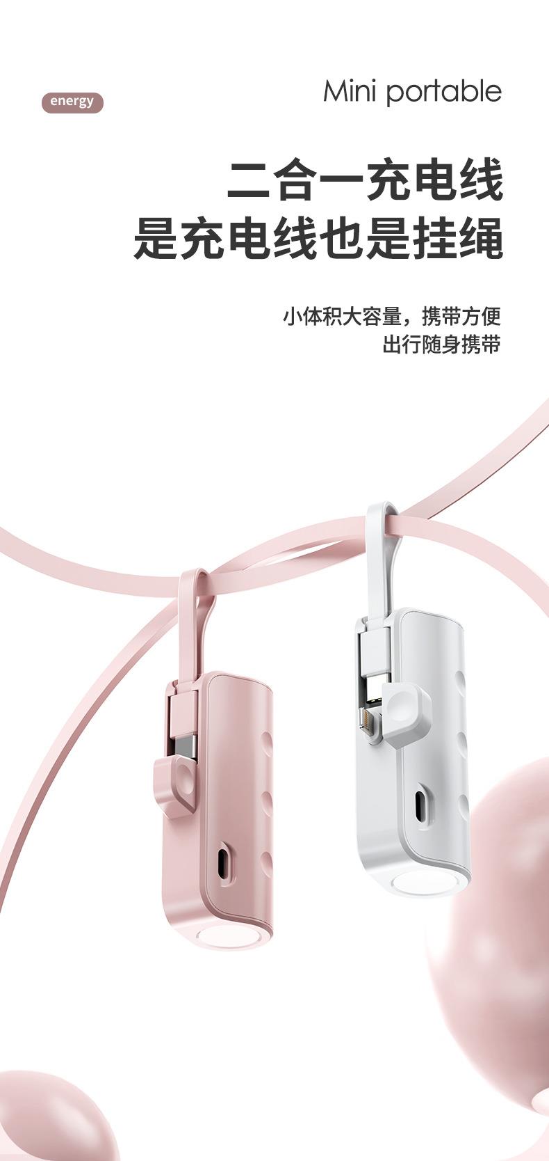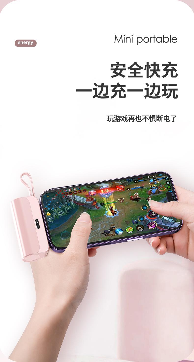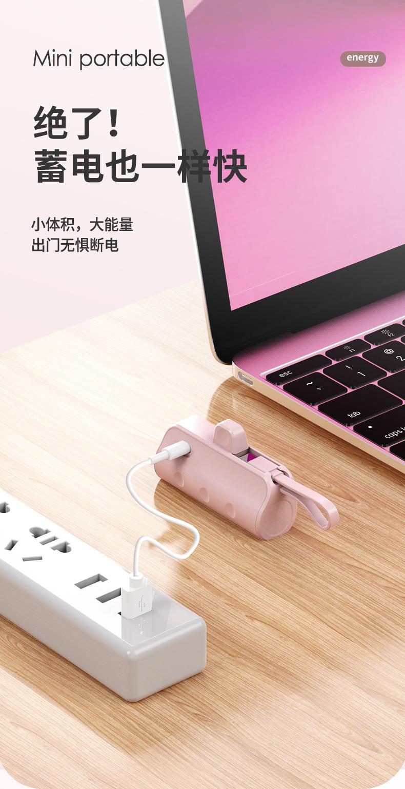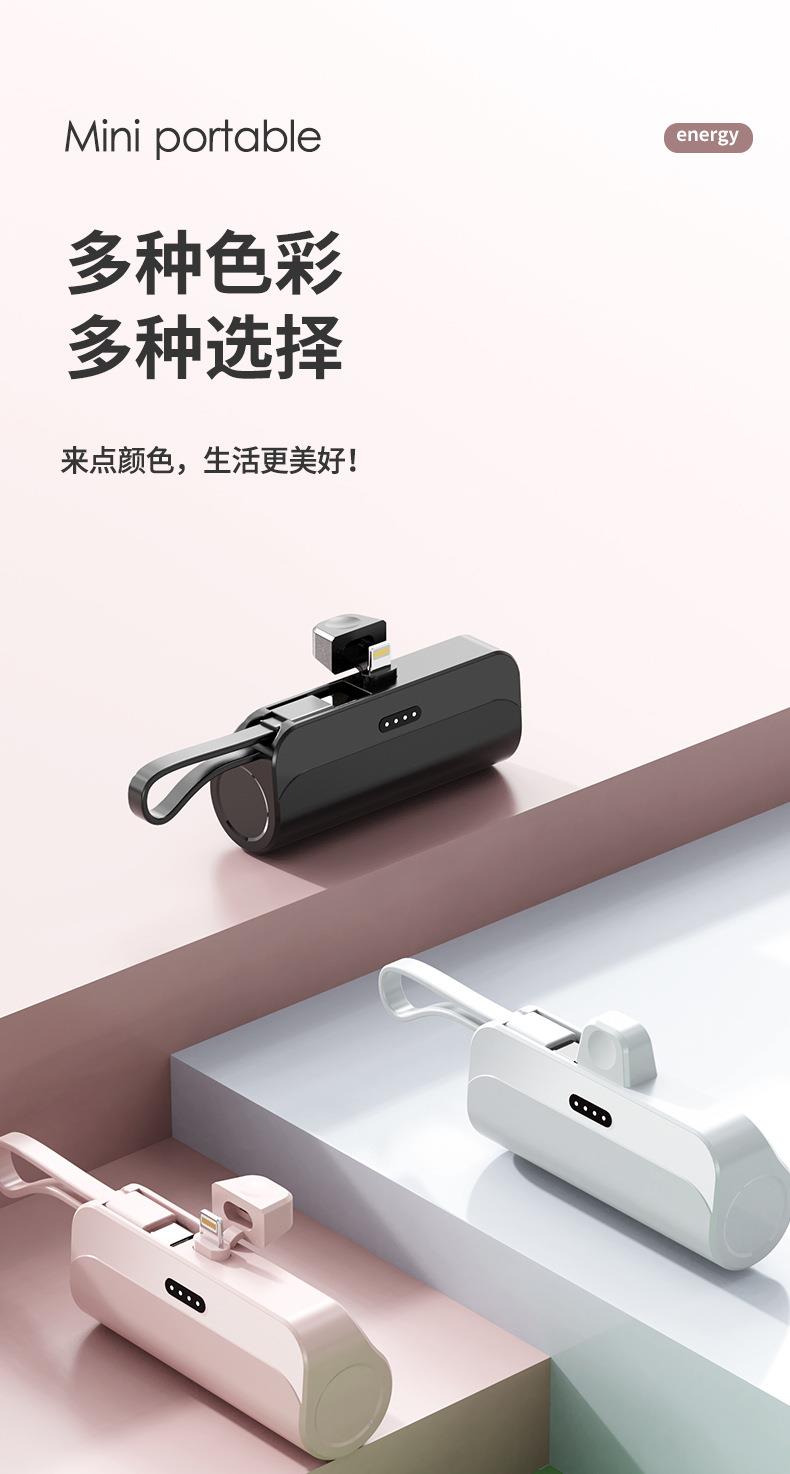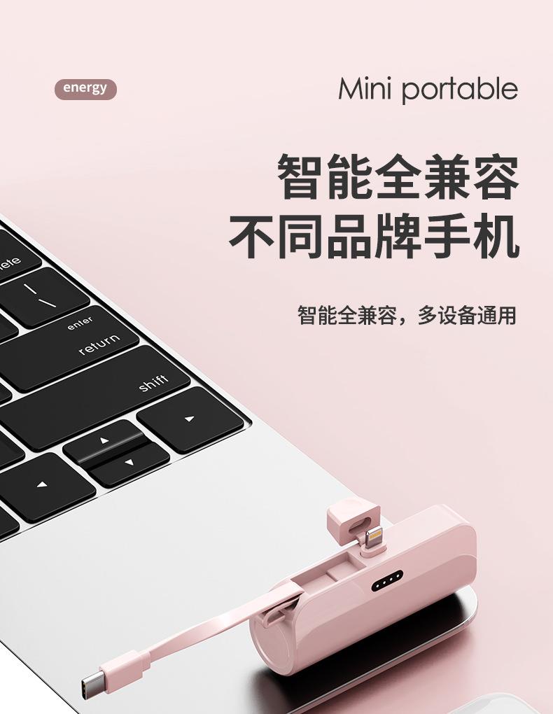 跨境迷你口袋无线胶囊充电宝5000毫安自带线便携移动电源