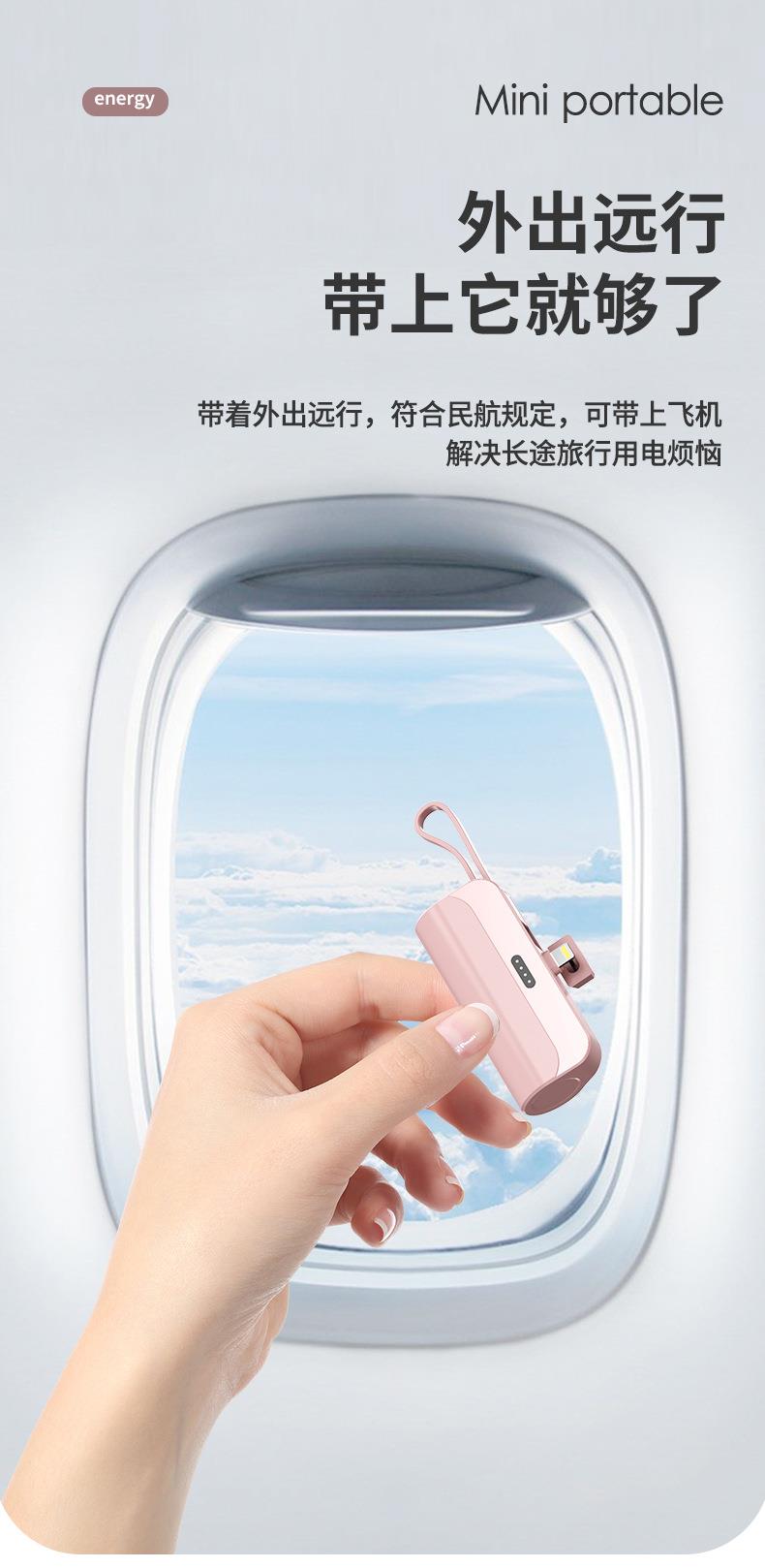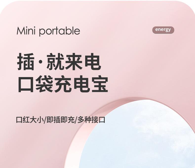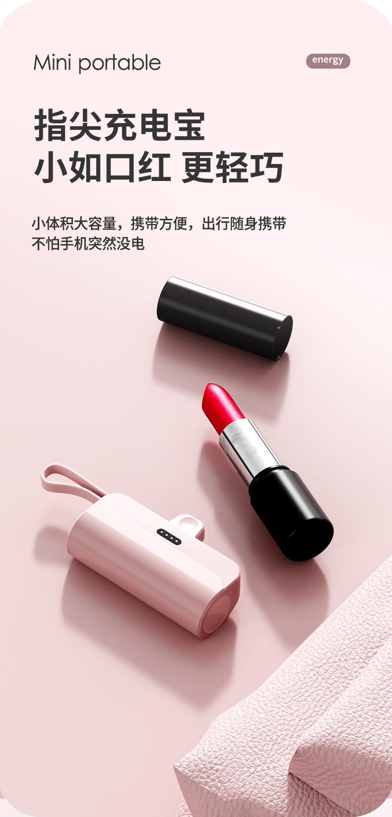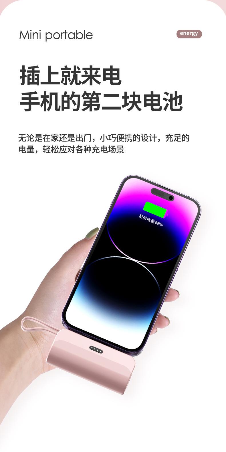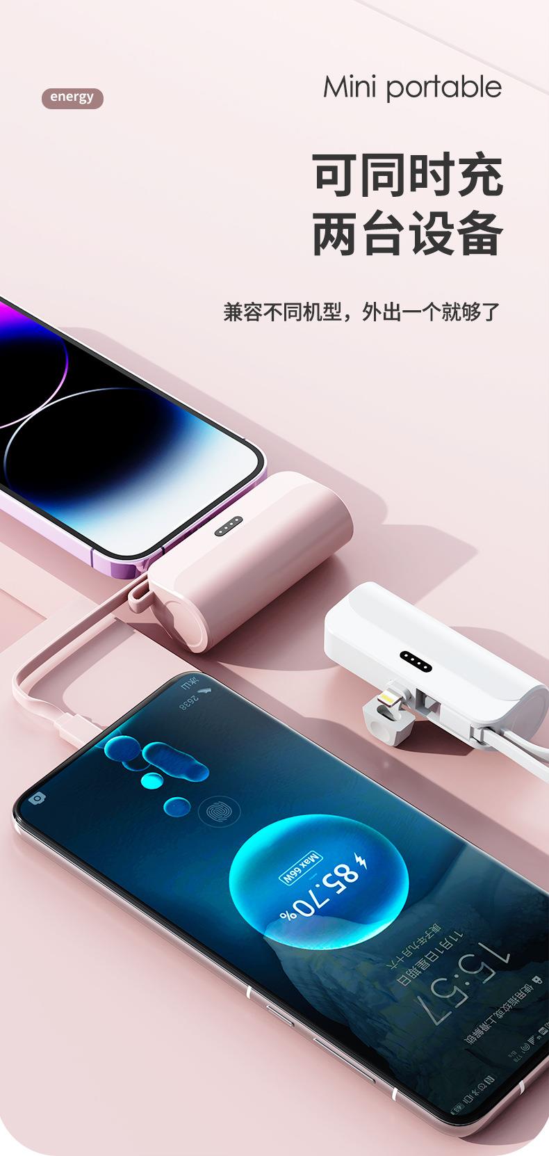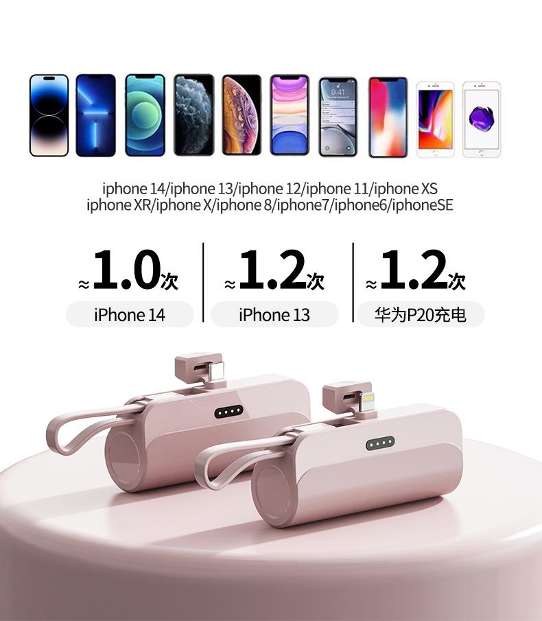 跨境迷你口袋无线胶囊充电宝5000毫安自带线便携移动电源