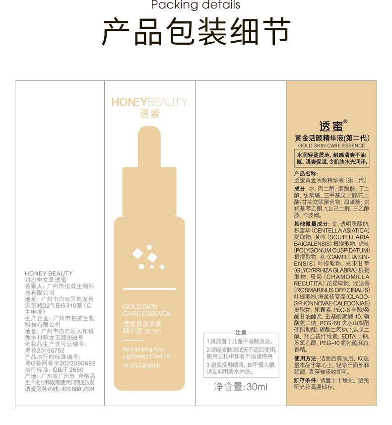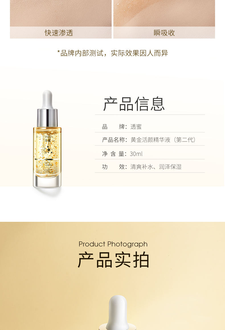 【蜜家特惠丨买1送1 买2送3】透蜜 黄金活颜精华液(第二代)30ml 纳米金箔促吸收玻尿酸锁水