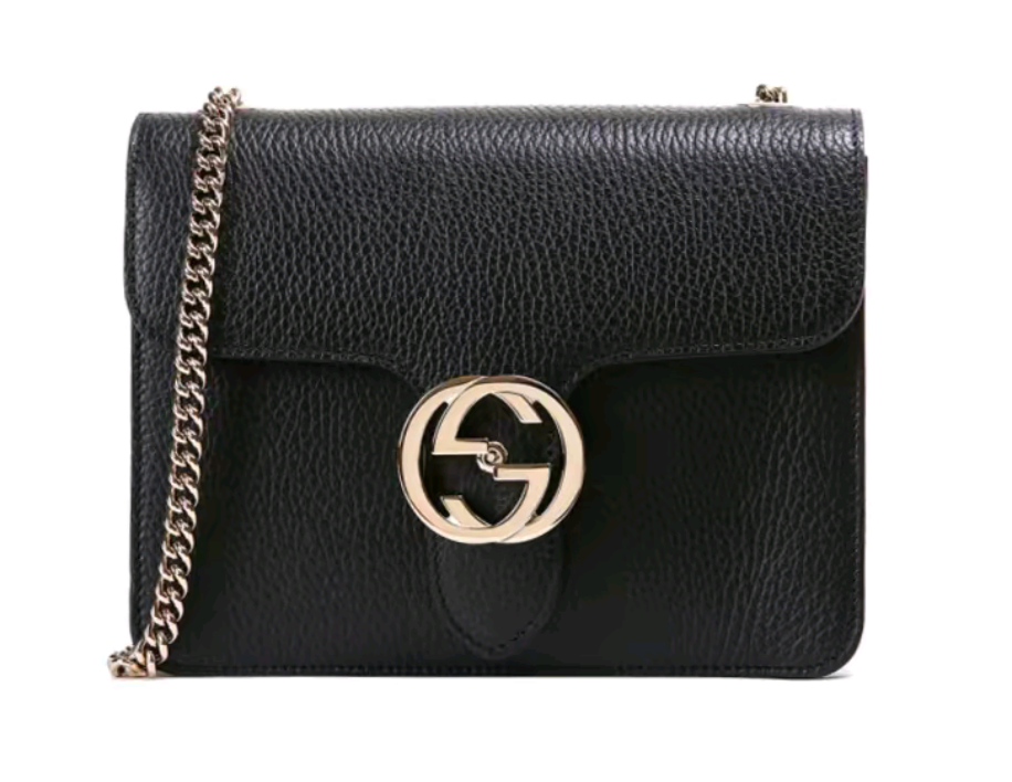 GUCCI古驰 双G链条肩带荔枝纹 牛皮 邮差包风琴包单肩斜挎包 小号 女款 黑色