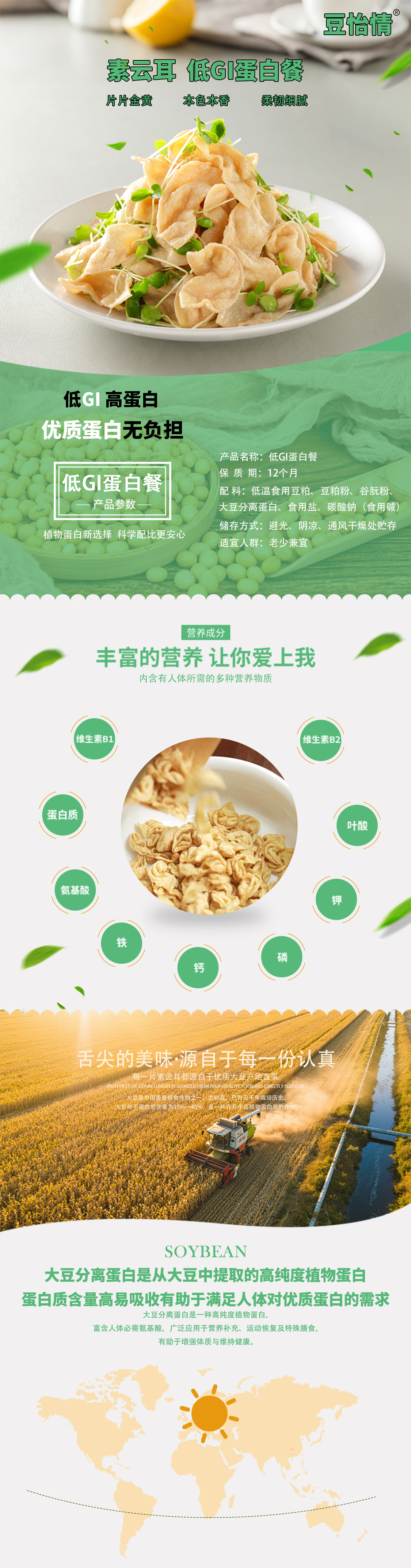 【低GI认证·蛋白炸弹】豆怡情素云耳低GI蛋白餐高蛋白营养饱腹 1盒含6袋 每袋35g