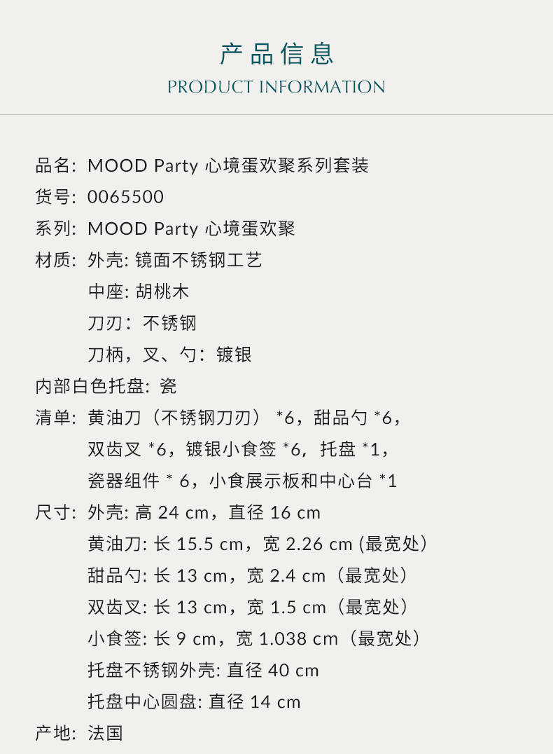 CHRISTOFLE 昆庭 MOOD Party 心境蛋聚会西餐餐具小食盘套装