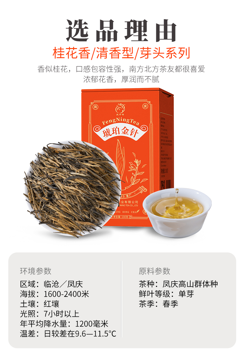 凤宁号【琥珀金针】特级单芽 花香滇红茶 100克/盒