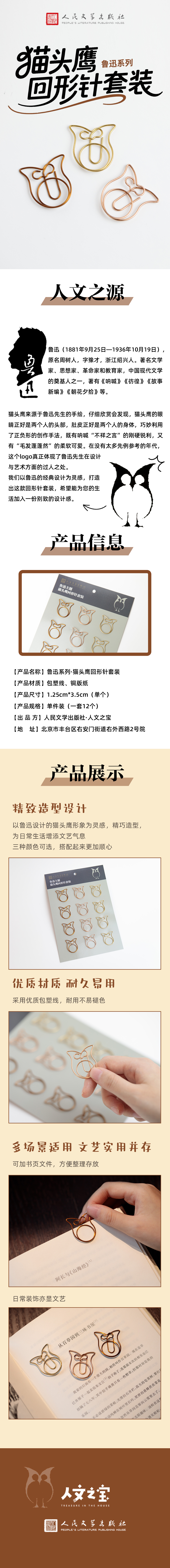 【人文之宝】鲁迅系列 · 猫头鹰回形针套装