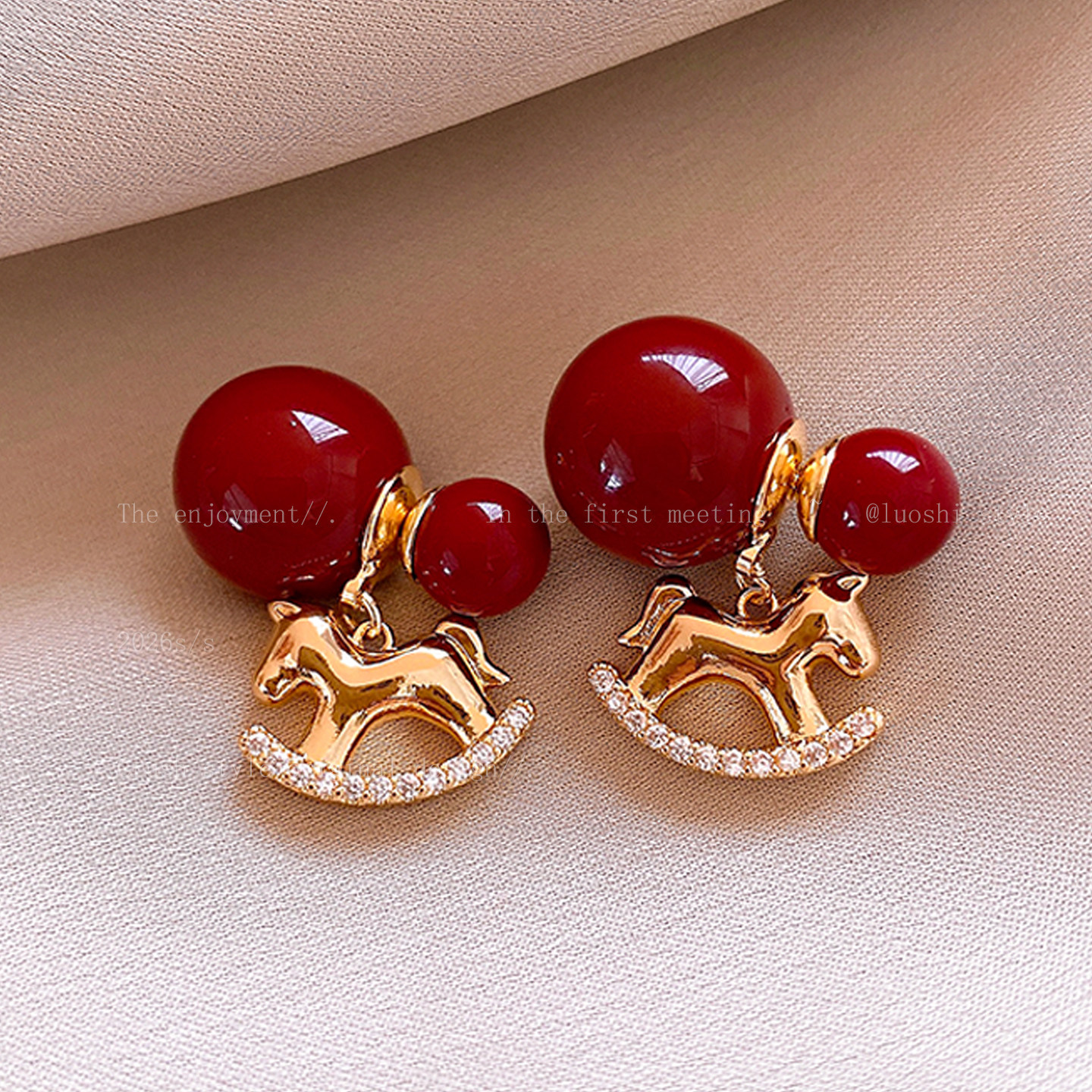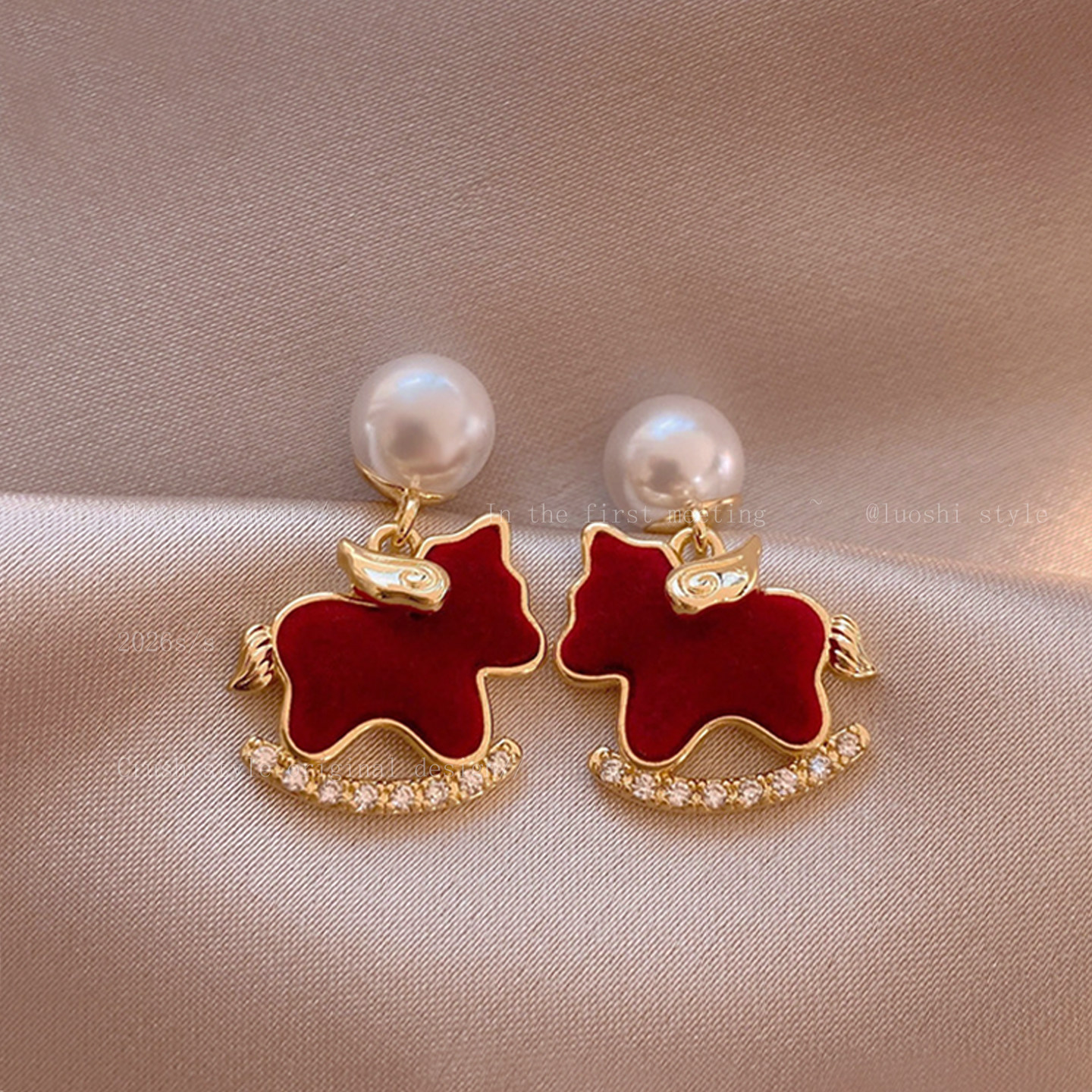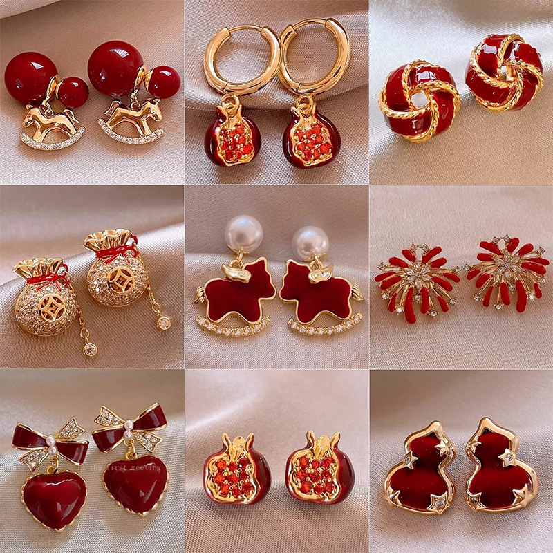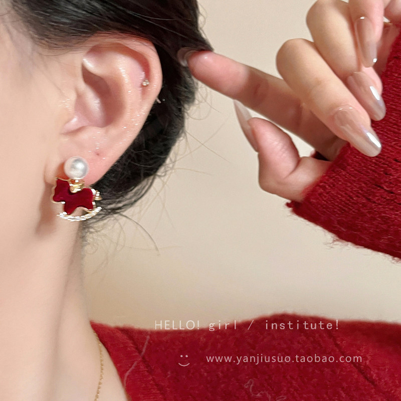 【YW】无忧购【鸿运当“红”】新年红色小马珍珠耳环女高级感过年耳钉2026新本命年耳坠秋冬耳饰(49/5件)2952(截单后3-5天发货)