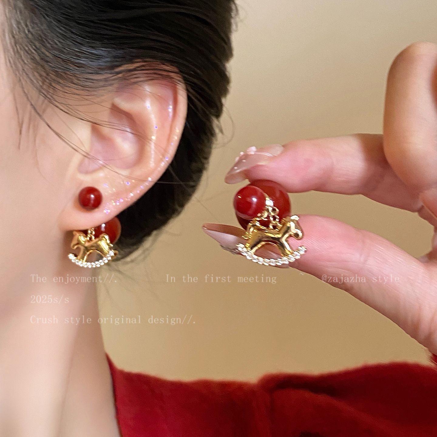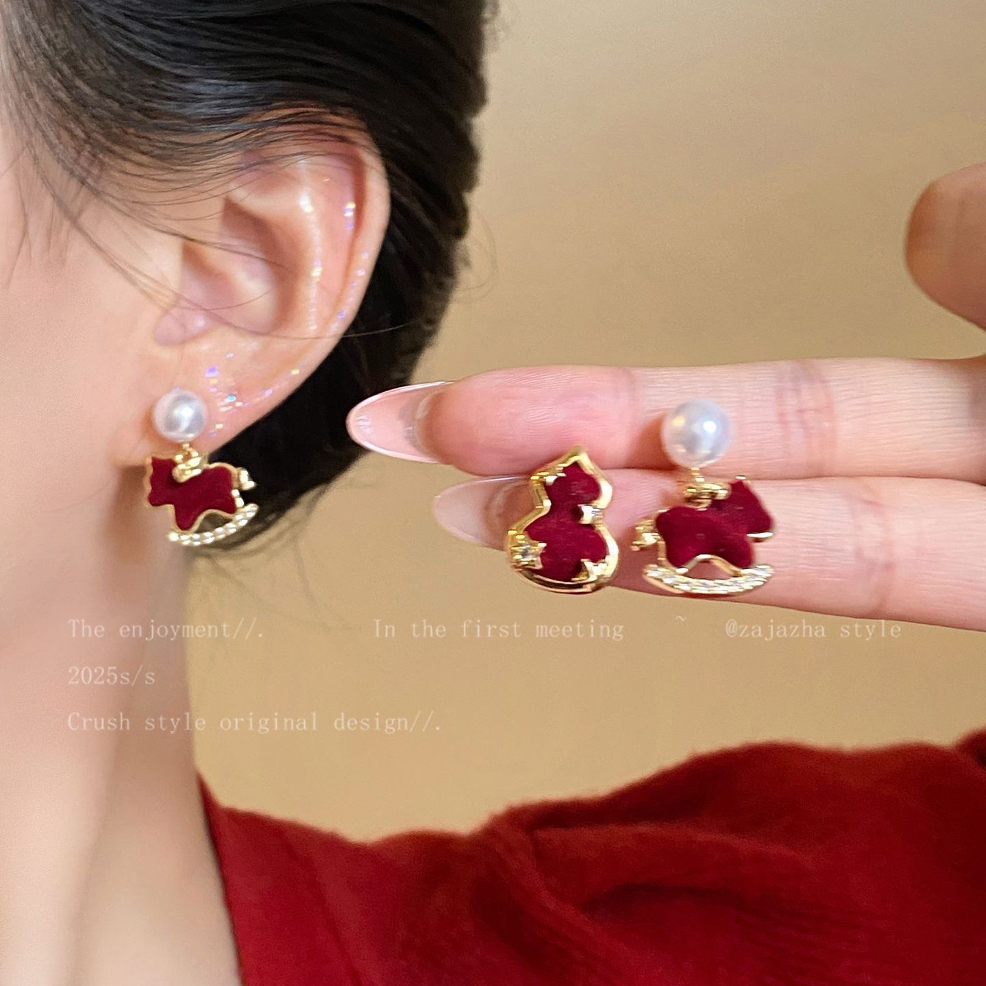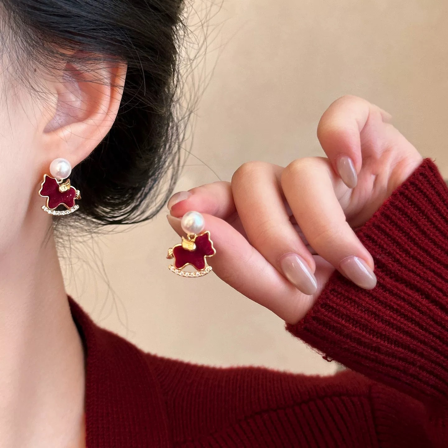 【YW】无忧购【鸿运当“红”】新年红色小马珍珠耳环女高级感过年耳钉2026新本命年耳坠秋冬耳饰(49/5件)2952(截单后3-5天发货)