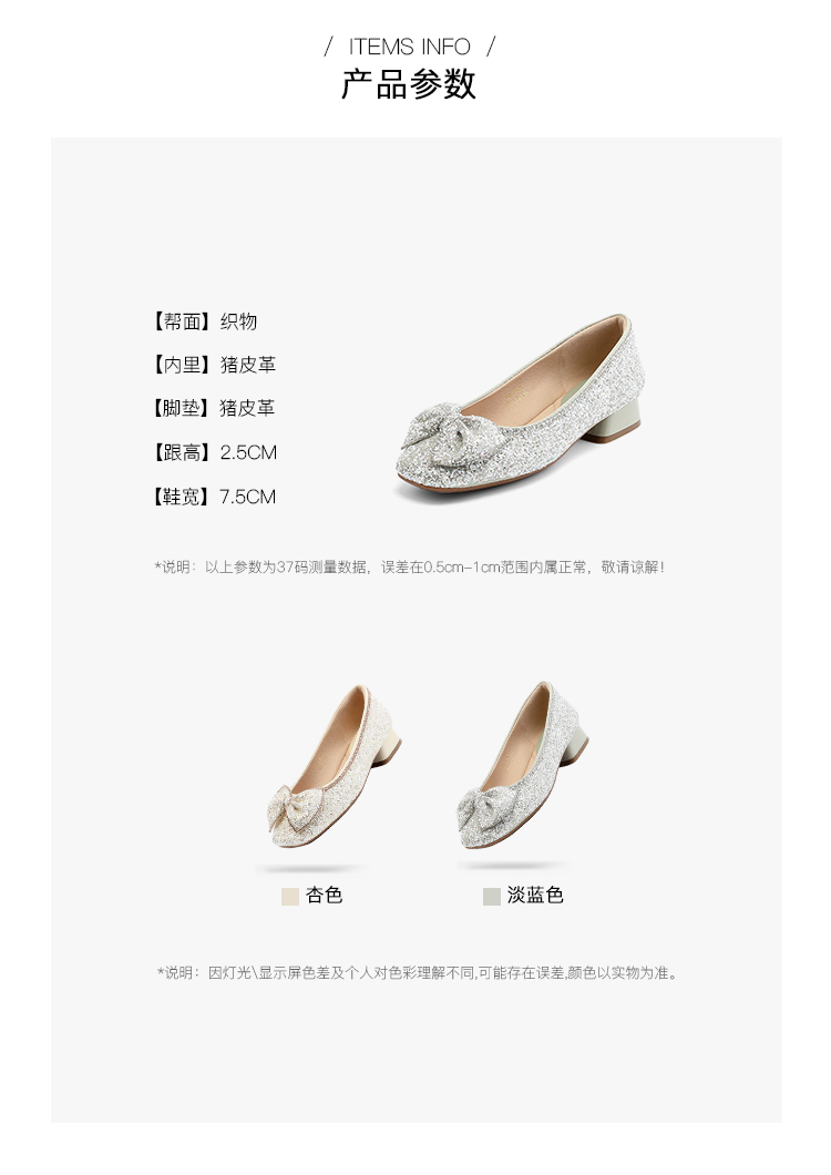 星期六拼色羊皮浅口方跟休闲女鞋SS33111184