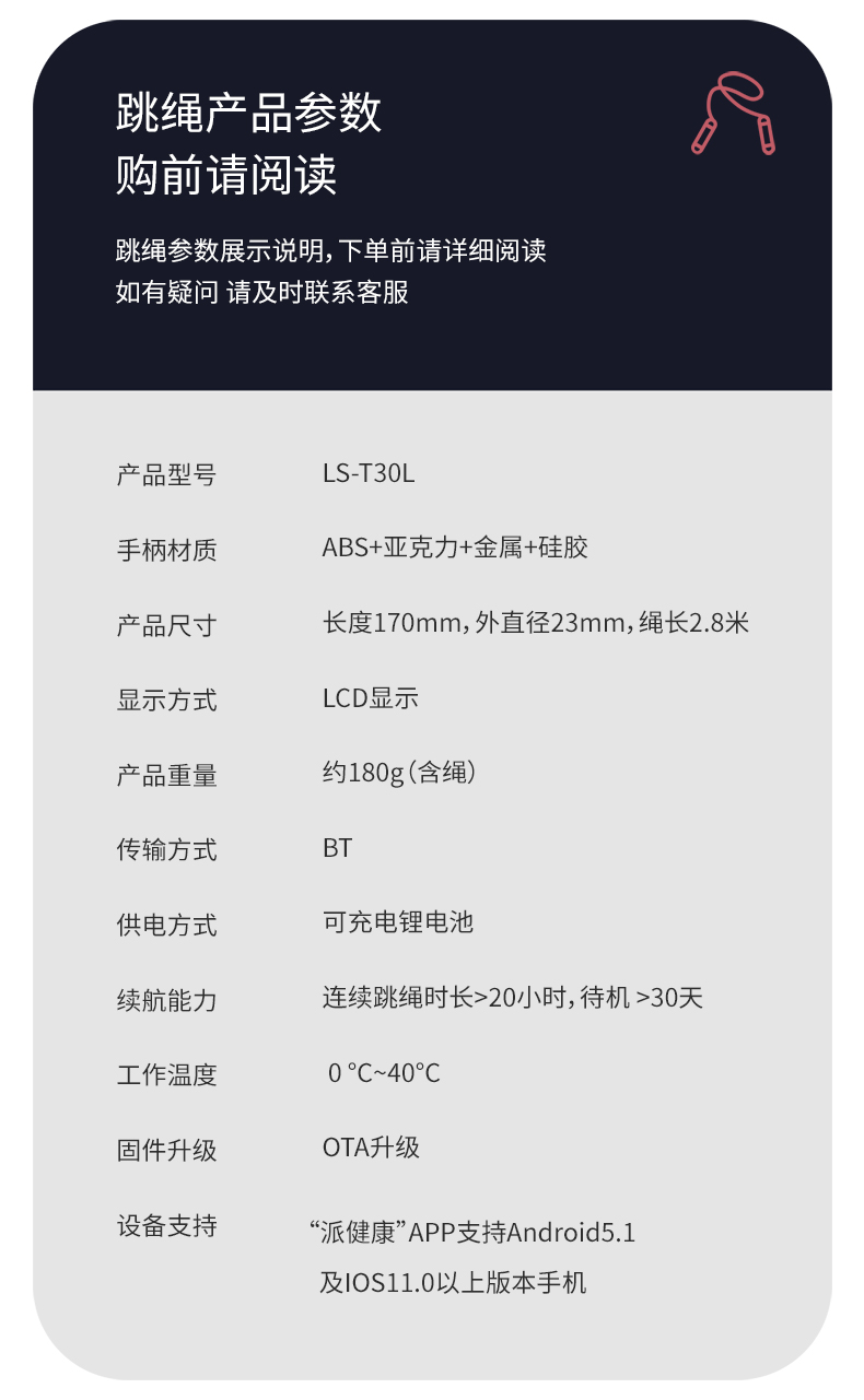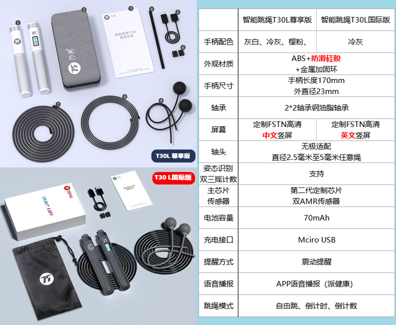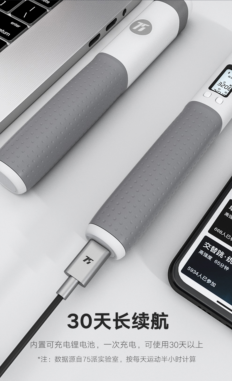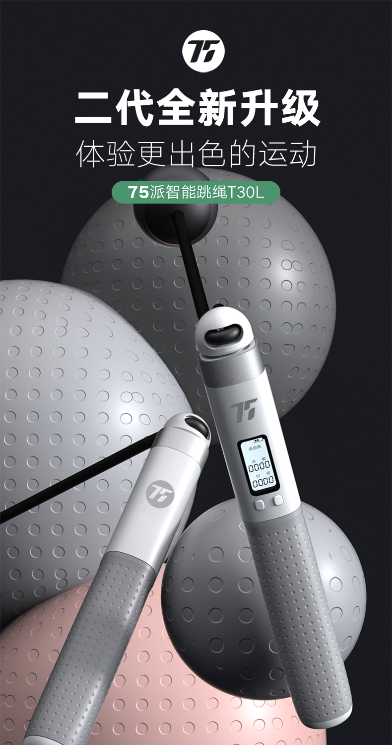 75派第二代智能跳绳T30L蓝牙跳绳专有APP计数跳绳中考健身减脂