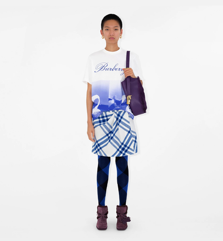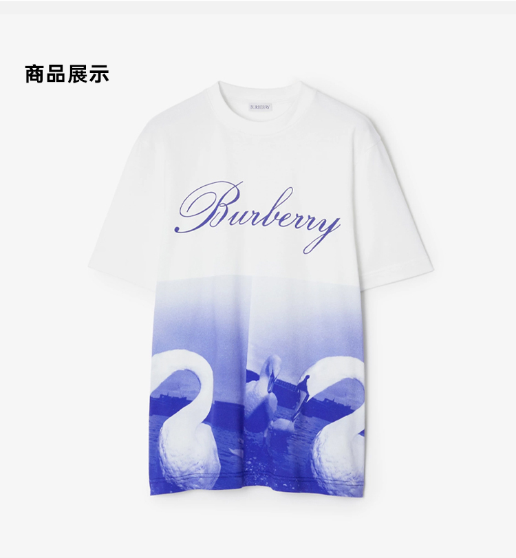 BURBERRY 巴宝莉 女士天鹅徽标印花棉质圆领短袖T恤 混色 8077611 B7323