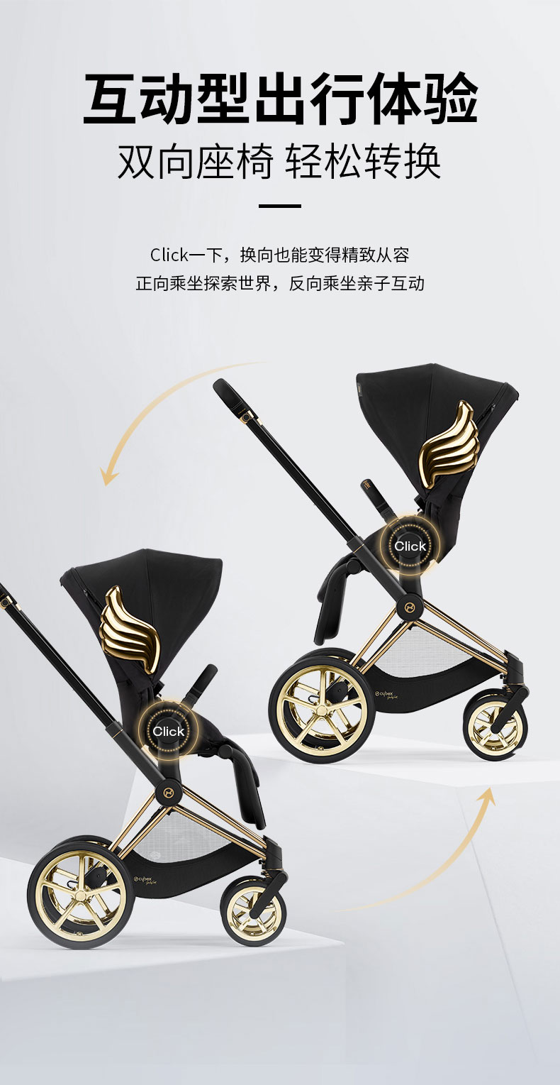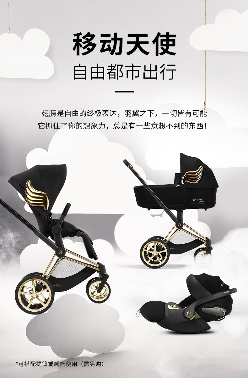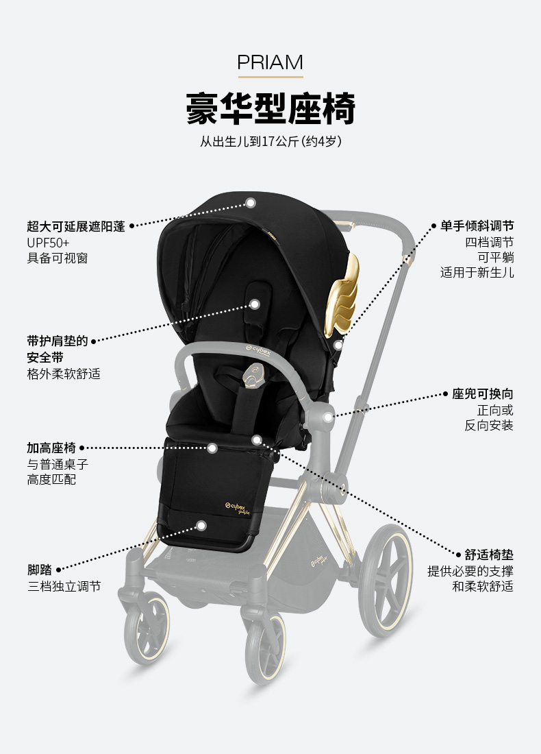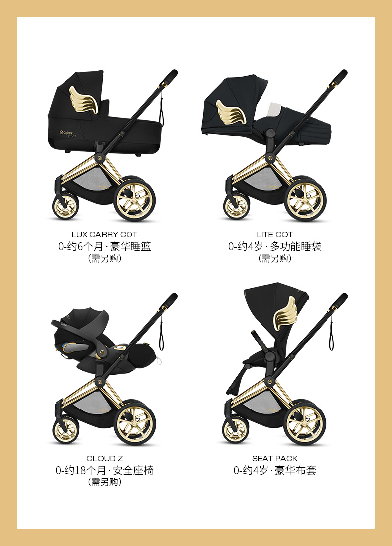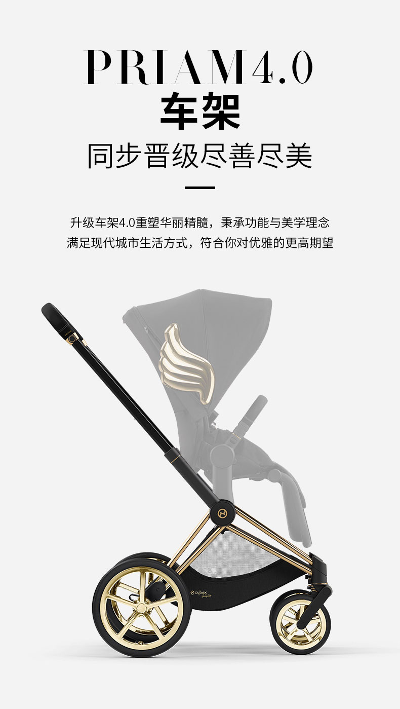 德国Cybex Priam普乐 4.0婴儿推车限量版JSW黑色金翅膀
