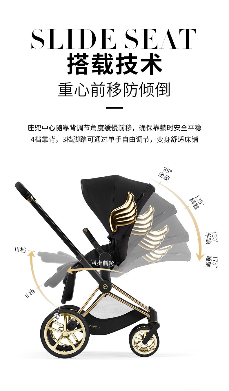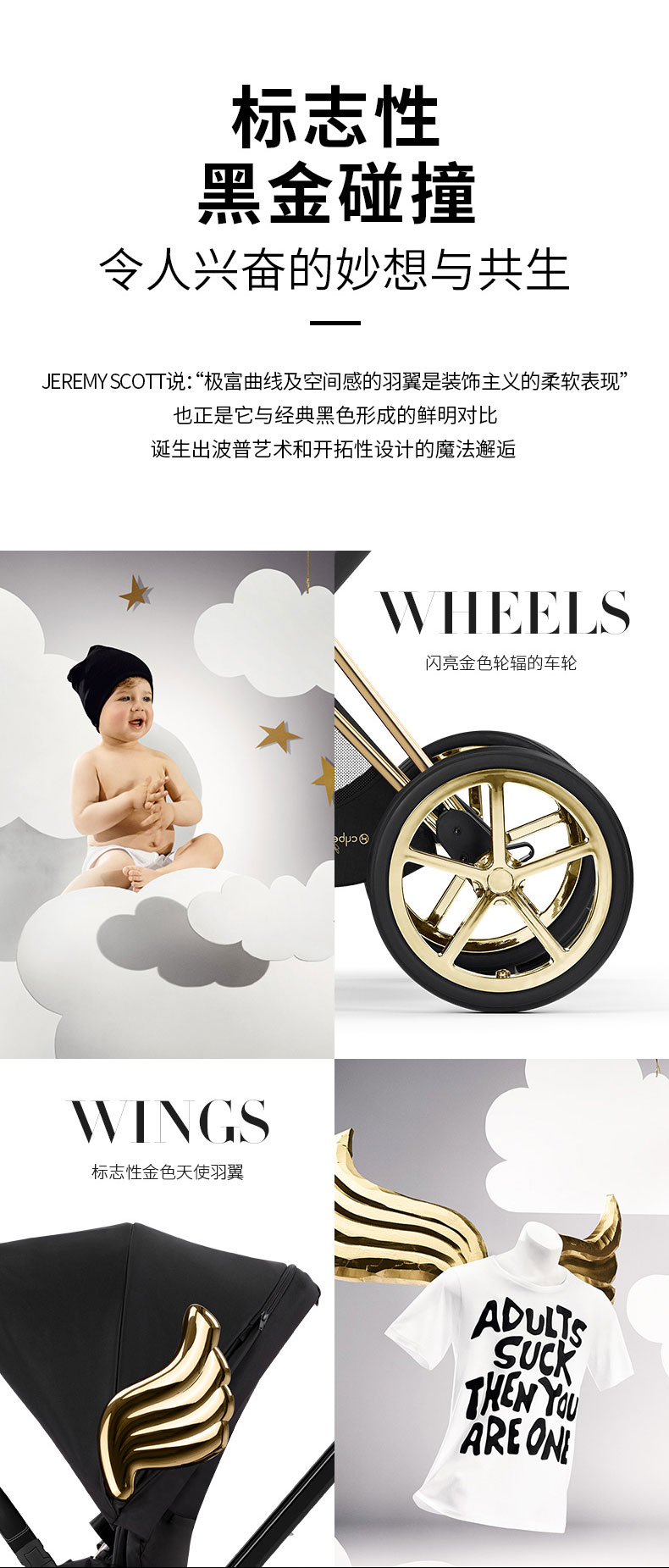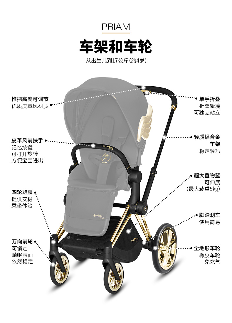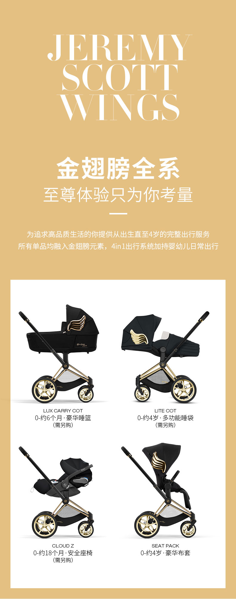 德国Cybex Priam普乐 4.0婴儿推车限量版JSW黑色金翅膀