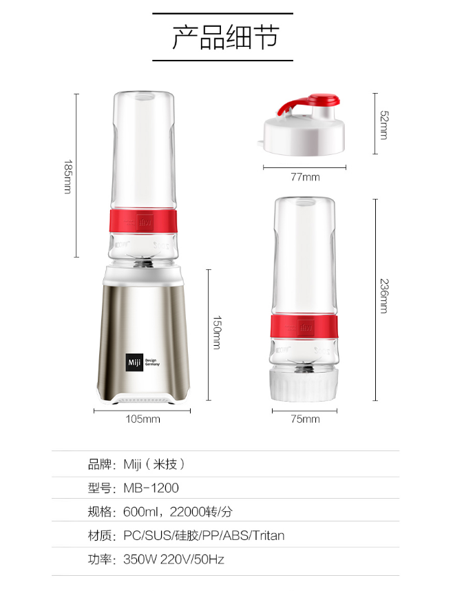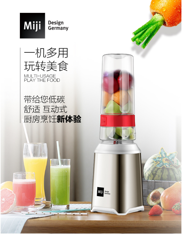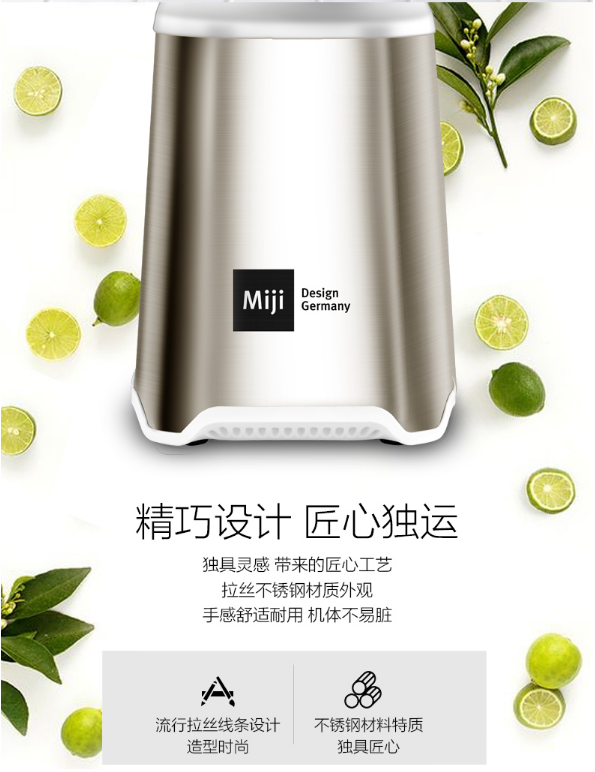 Miji德国米技 便携果汁机(手携按压式) 迷你轻巧 不锈钢 杯子耐摔 600ml MB-1200