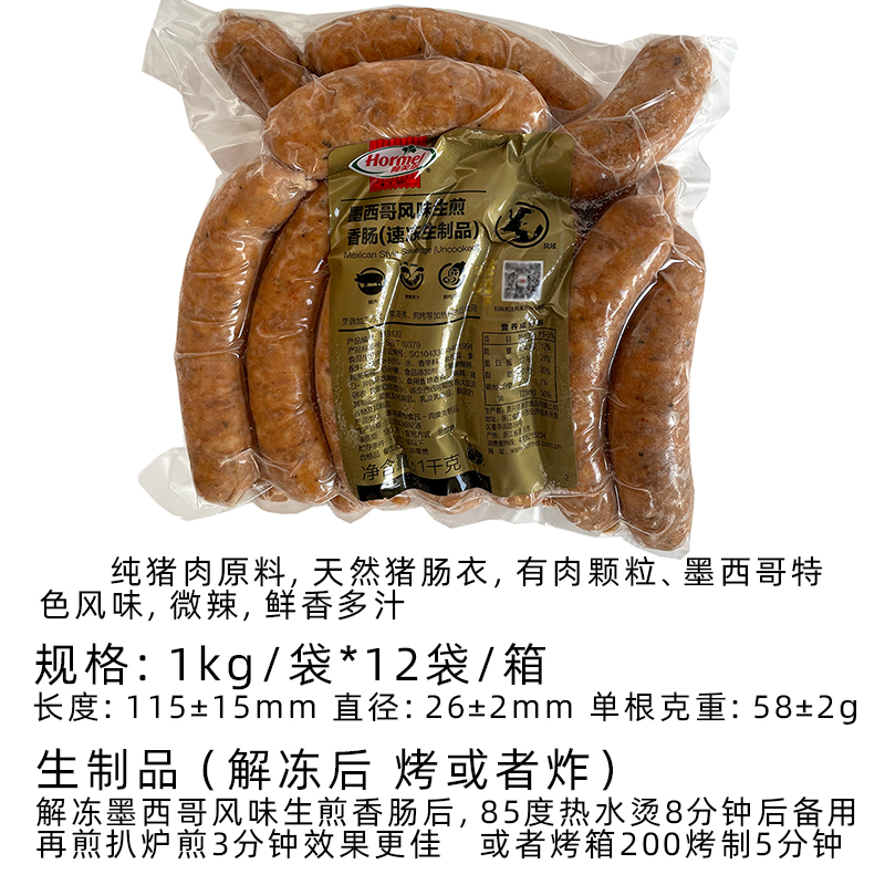 荷美尔生煎墨西哥风味香肠1kg(118133)约17根生煎肉糜猪肉披萨水煮煎烤肠(顺丰发货)